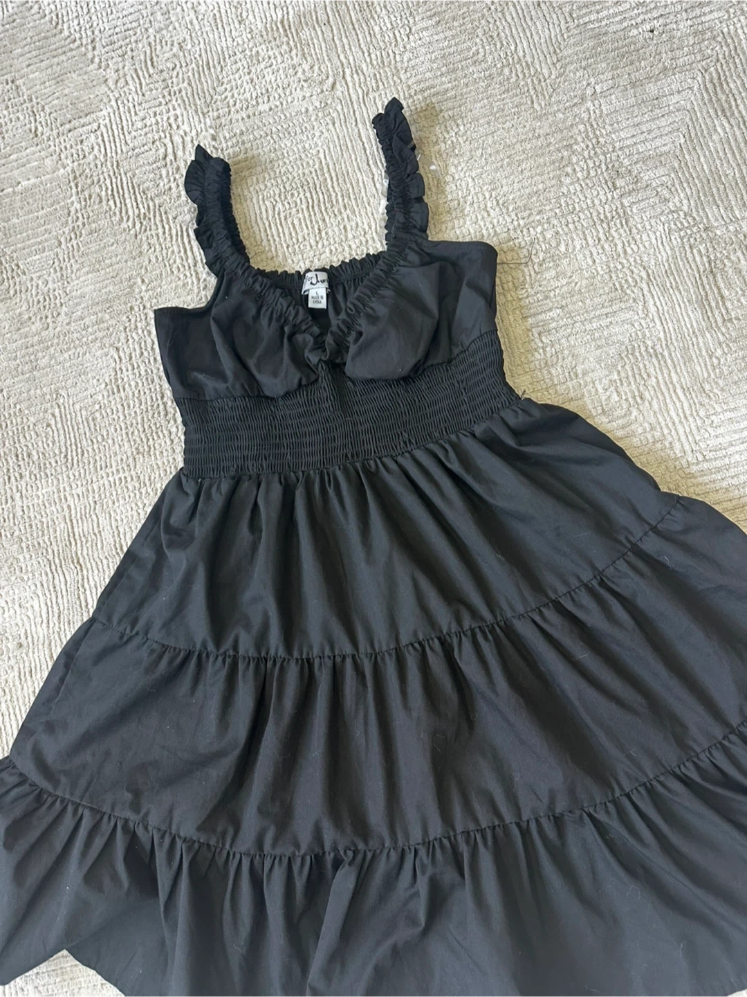 Black Smocked Tiered Dress with Ruffles