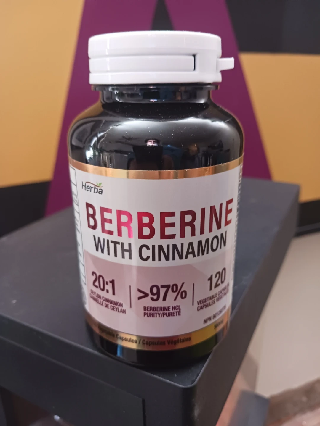 Unopened! Herba Berberine with Cinnamon capsules. Each bottle contains 120 vegetable capsules. This product is Berbeine HCl, with purity greater than 97%. The expiry date is October 2029. Use as directed by a health professional.
