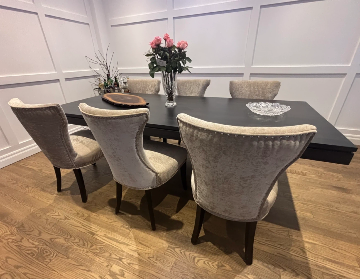 Set of 6 Velvet Dining Chairs - Beige Upholstered Tufted Chairs