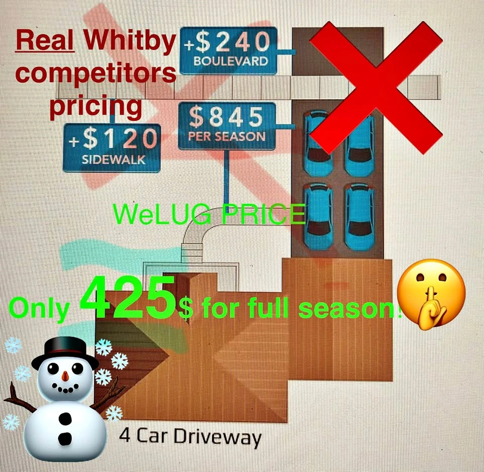 Only until Halloween. WeLUG is coming to pick up the snow in your driveway for only 425$ The best price you will find!!