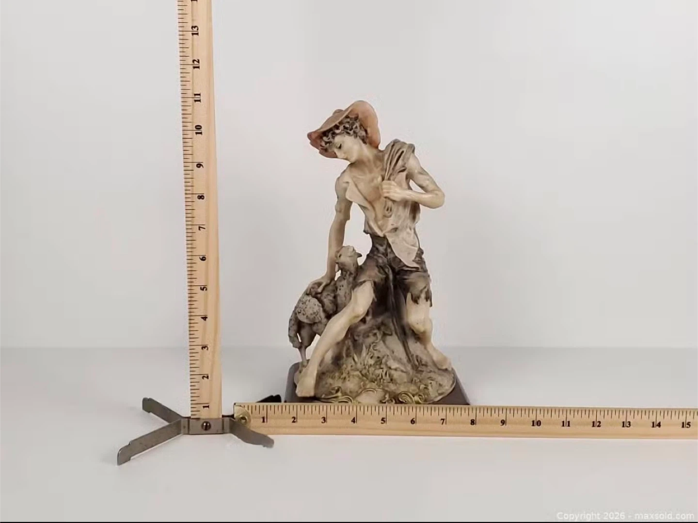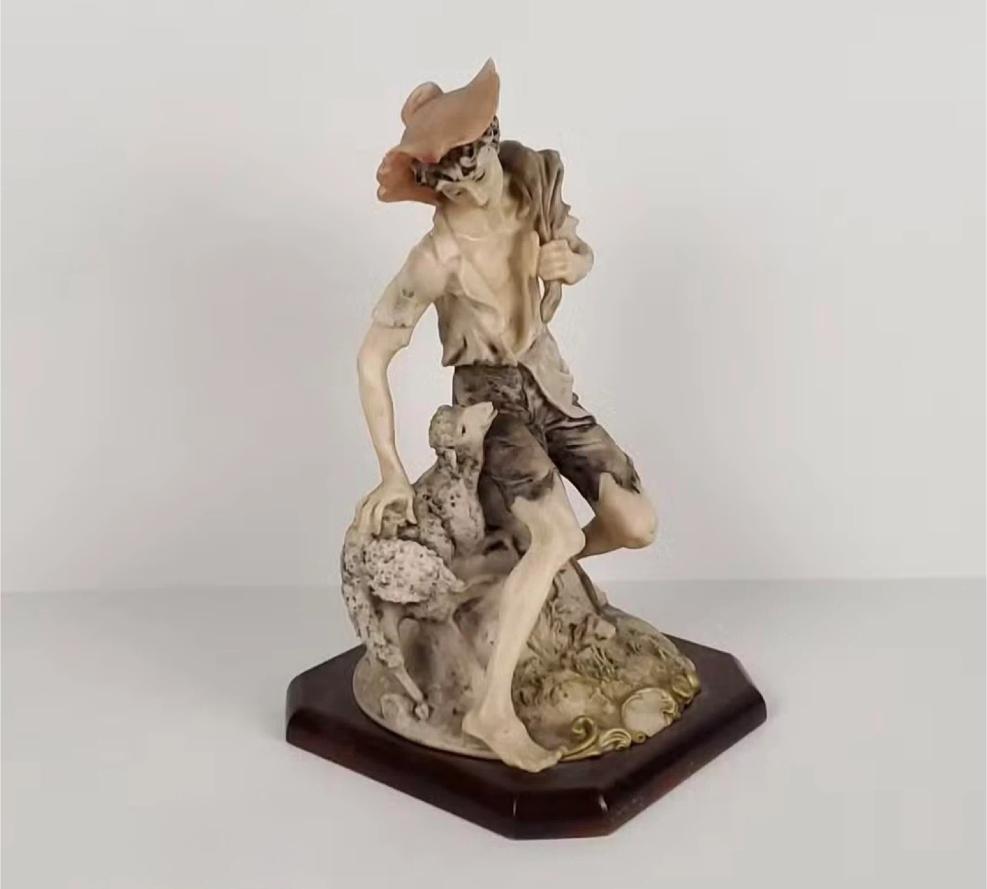 Beautiful signed Italian figurine by renowned sculptor Giuseppe Armani (1935–2006). Featuring a classical shepherd and lamb design with fine hand-painted details. Mounted on its original wooden base with gold-toned accents. Approximately 11 inches tall. A timeless collectible in excellent condition.