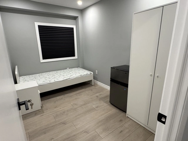 Private room for rent in beautiful newly built home. Location Weston Road and Rogers Road Toronto. Looking for 1 FEMALE to rent this room. Long term only Please. Room is private with Shared kitchen and bathroom. Fully Furnished. Room comes with bed, night stand, closet and private fridge. Utilities and WiFi are included. TTC 5 mins away. Coin laundry in the Kitchen. Restaurants, groceries and bakeries all within walking distance. Required: First and last. Proof of employment.