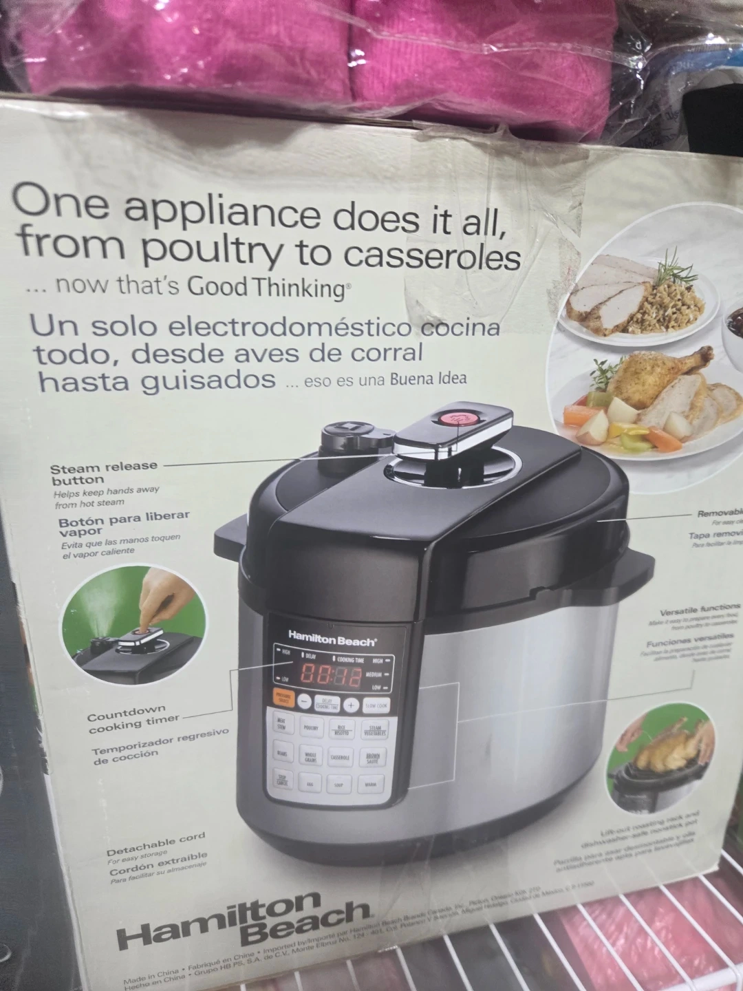 Hamilton Beach electric multi-cooker. It's versatile for steaming, slow cooking, and more. Features a countdown cooking timer and detachable cord.