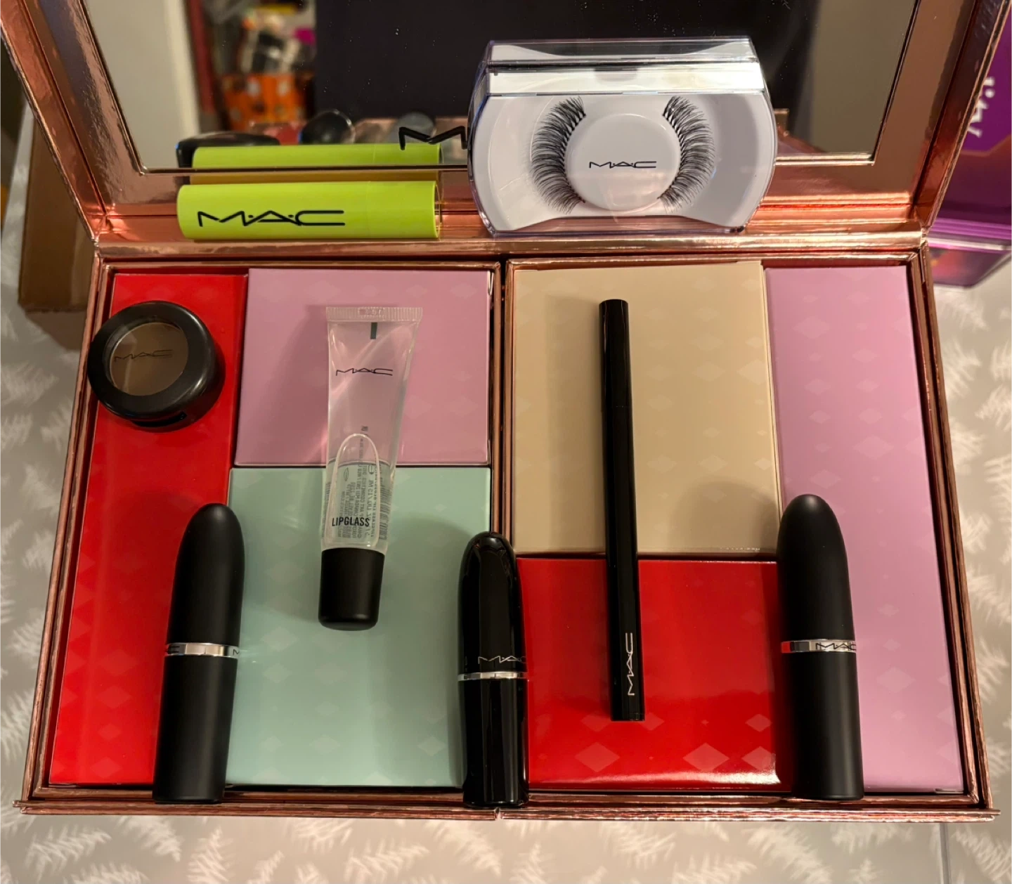 Selling a collection of MAC cosmetics! Includes lipstick, eyeliner, lip gloss, eyeshadow, and lashes. Prices are as follows…