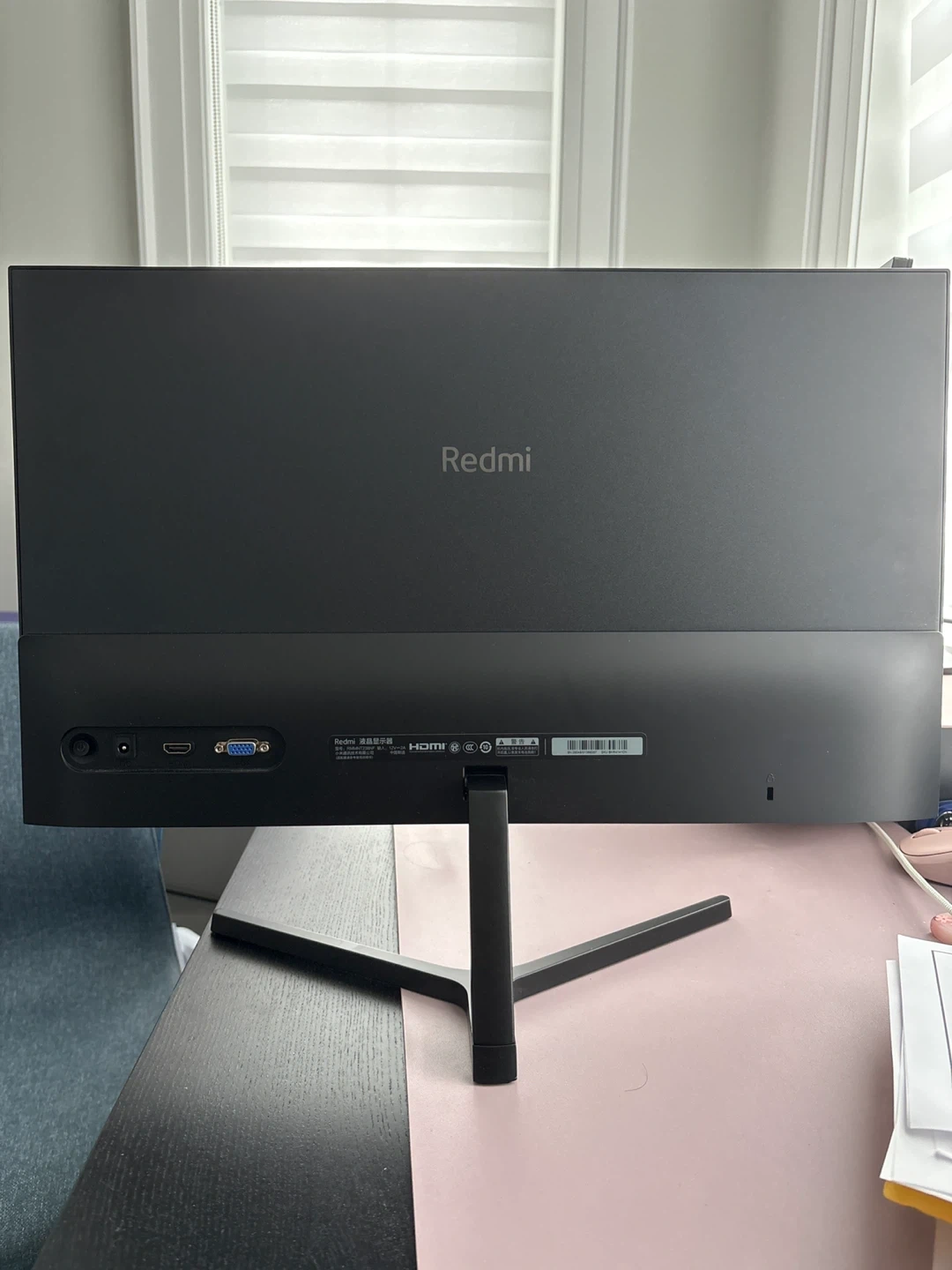 This is a Redmi monitor. It's a sleek black display, perfect for your workstation. It features HDMI and VGA ports.