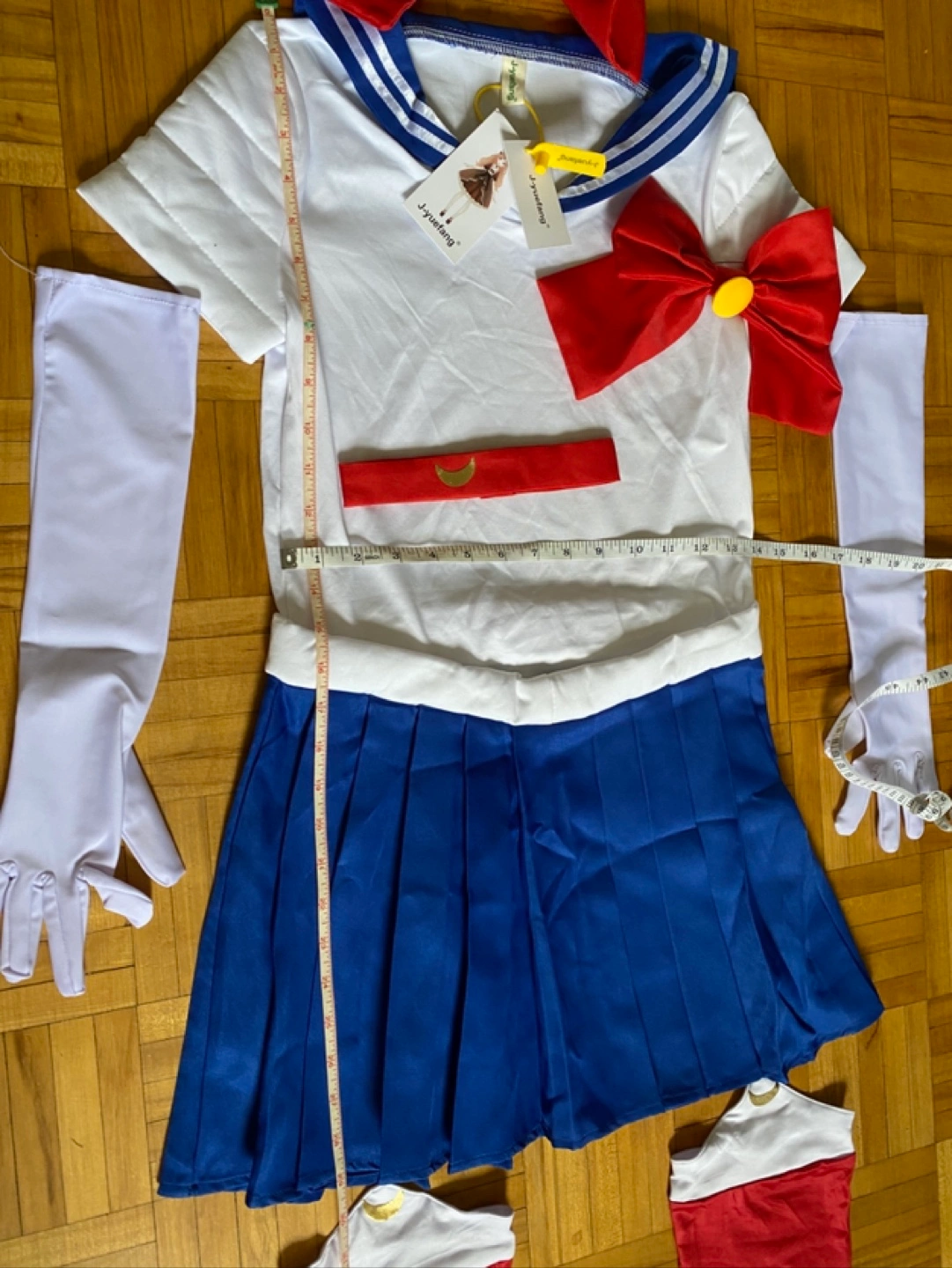 Selling a complete Sailor Moon cosplay costume! Includes the dress, bows, gloves, headpiece, and boot covers. Everything you need to transform into your favourite guardian of love and justice!