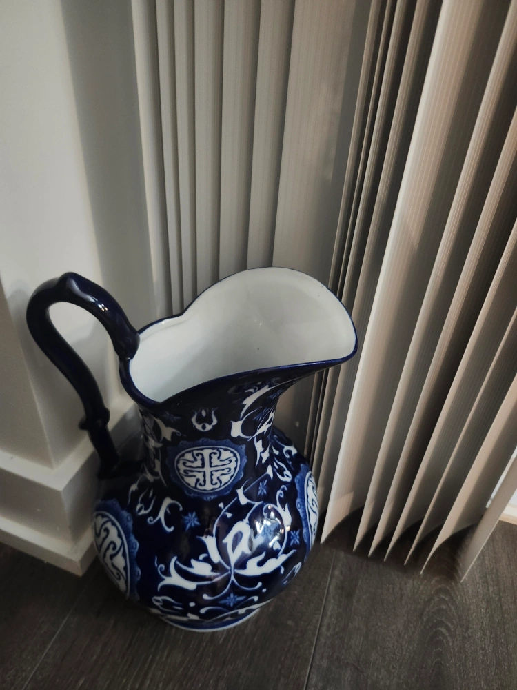 A beautiful decorative pitcher in a classic blue and white pattern! It would look great as a centrepiece or on a shelf