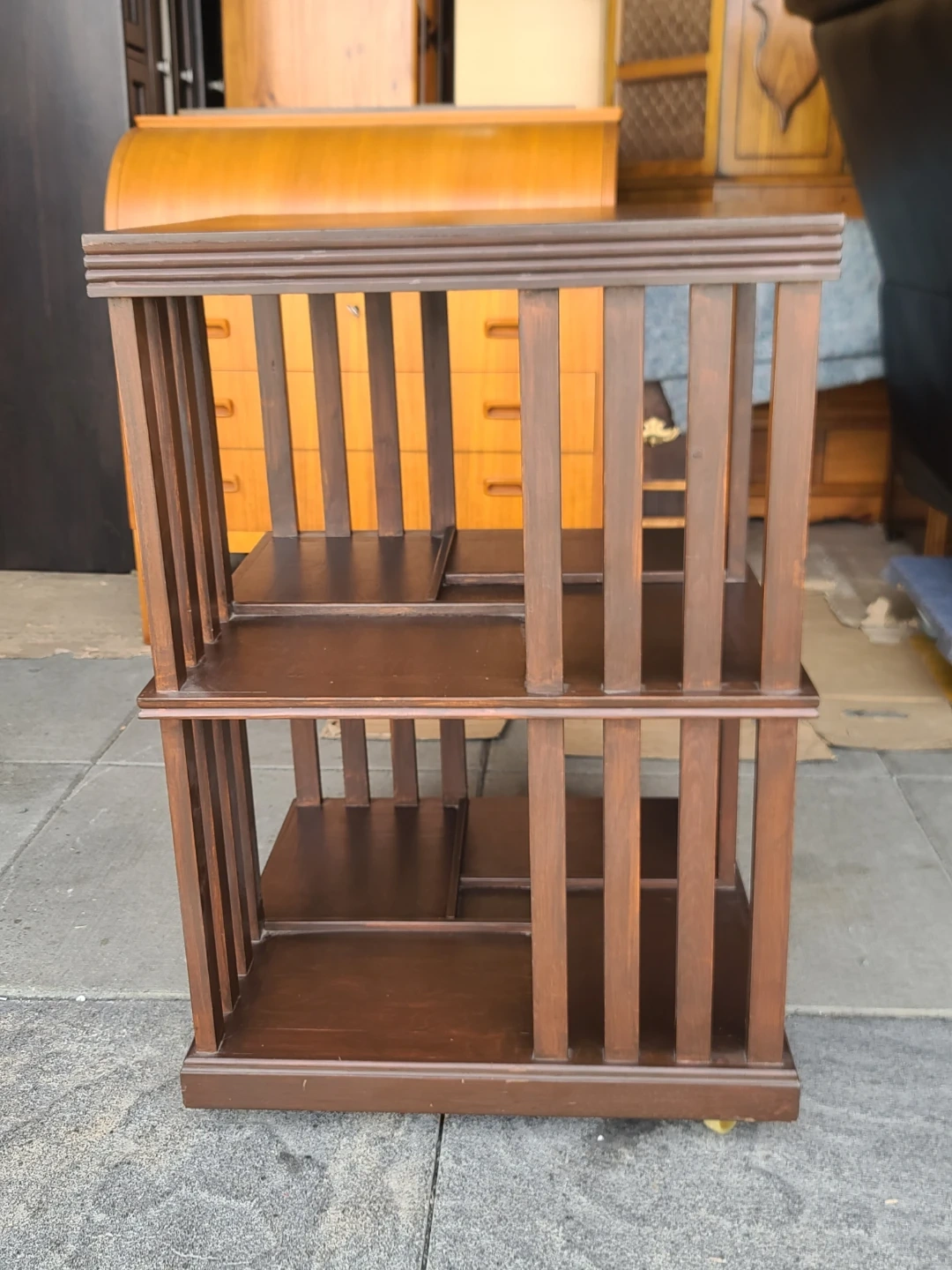 Wooden Rotating Bookcase with Wheels