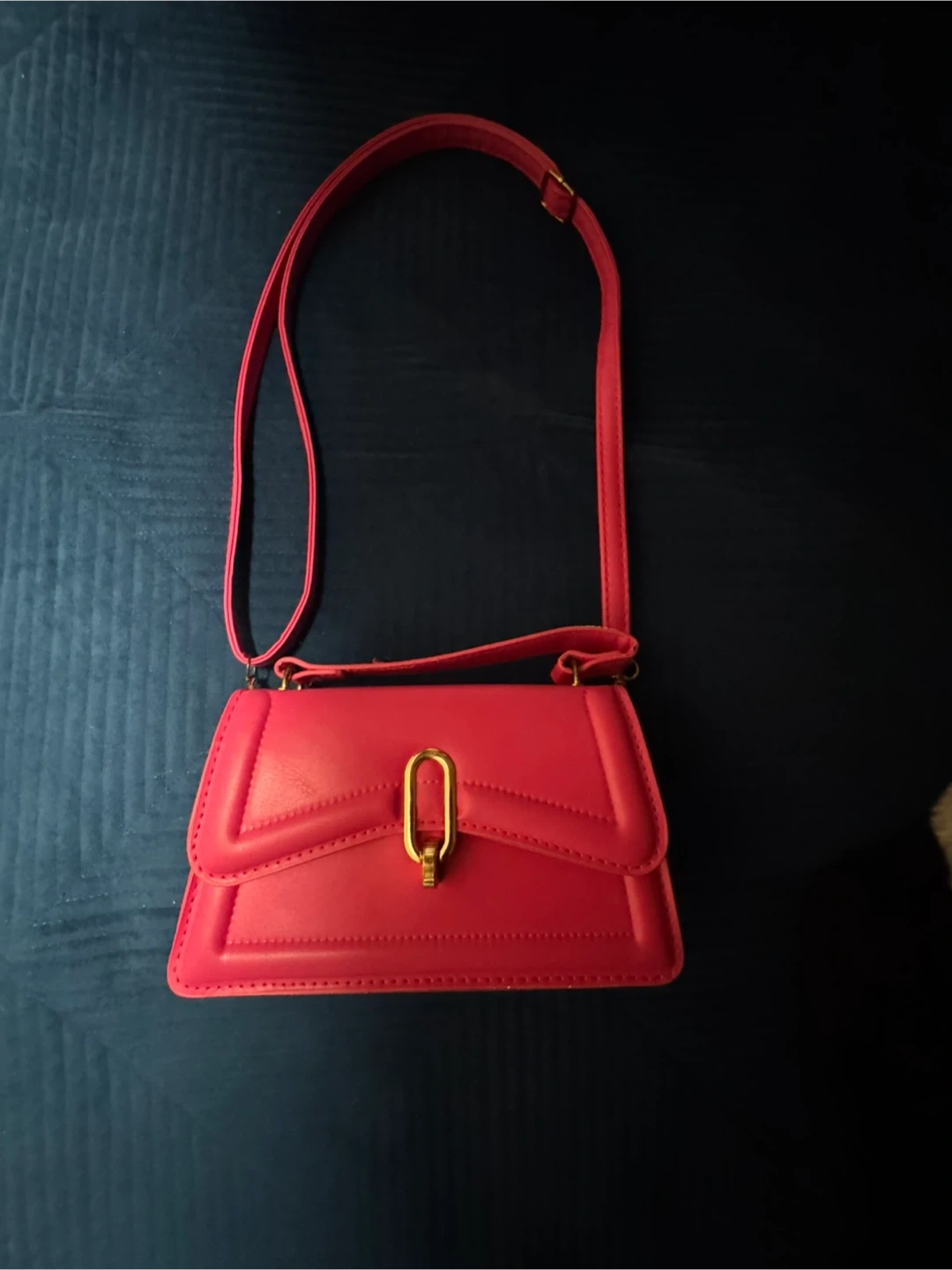 Chic crossbody purse in a vibrant hot pink colour. It's made from faux leather with a gold-tone clasp closure. The adjustable strap makes it comfy to wear.