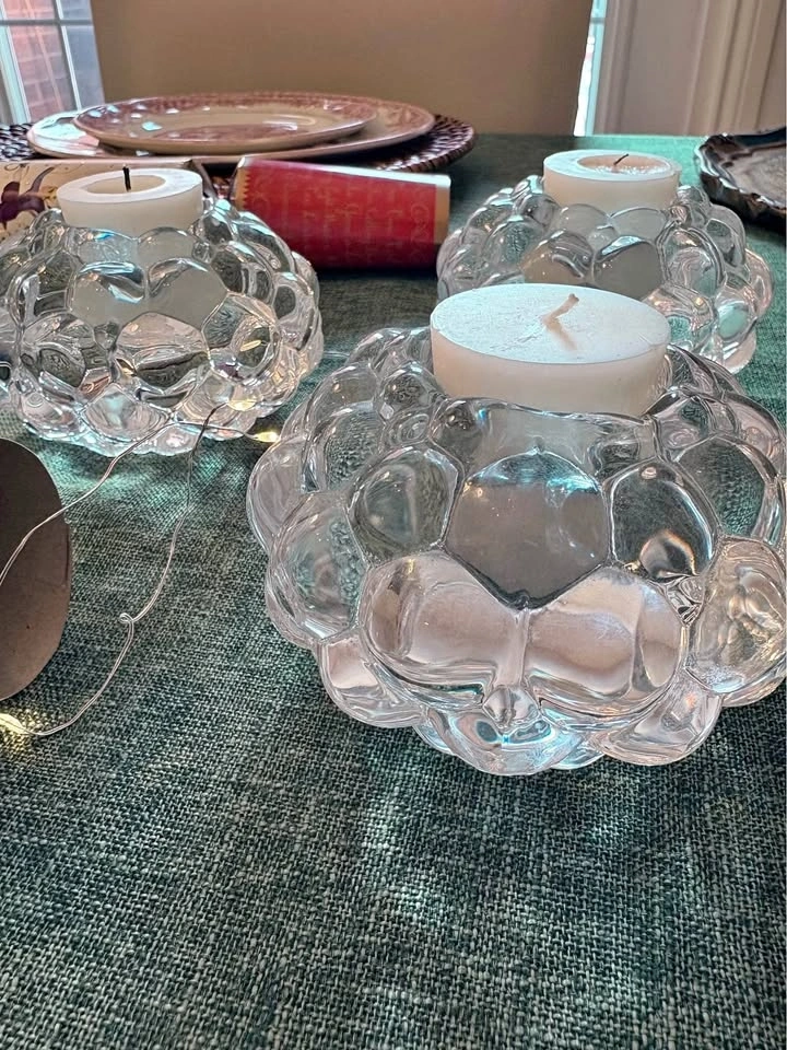 Inspired by the iconic raspberry design from Orrefors. The texture catches natural light beautifully — perfect for spring tablescapes and minimal interiors. Excellent condition. No chips. $85 for the set | $32 each. Refined, timeless, and increasingly hard to find as a complete trio. Pickup Thornhill.