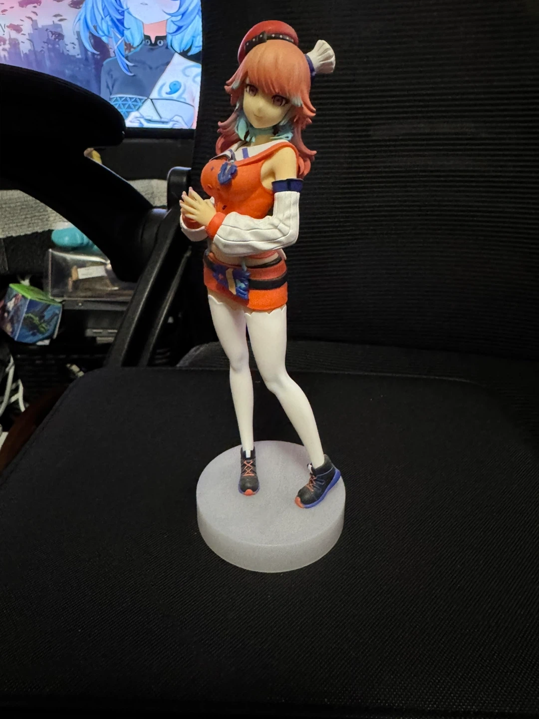 This is a fun anime figurine. It's made of plastic and stands on a base. Great for collectors! No box