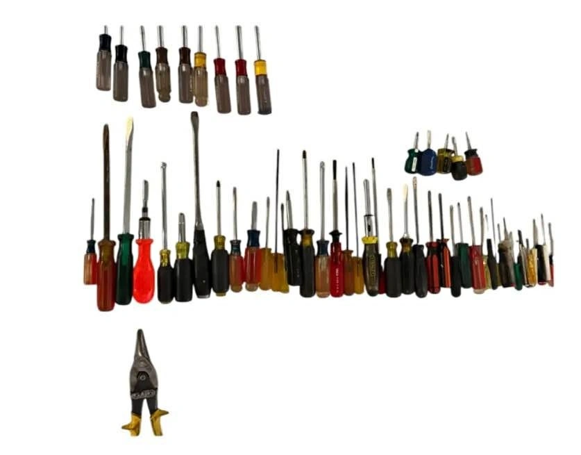 Large mixed lot of screwdrivers in various sizes and styles. Includes flathead, Phillips, precision drivers, long-shank drivers, and stubby styles. Great for garage, workshop, or toolbox refresh. Mixed handle styles and sizes. Ideal for DIYers, mechanics, or contractors. Sold as a lot only. Quantity: ~35–40 screwdrivers (see photos). Condition: Used, functional.