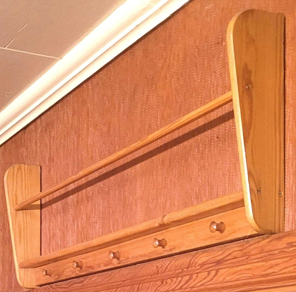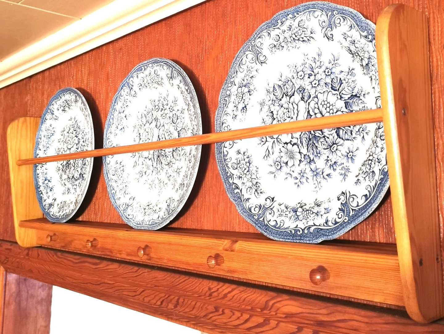 Large 34” Solid Pine Wall Plate Rack Circa 70s Farmhouse Shelf