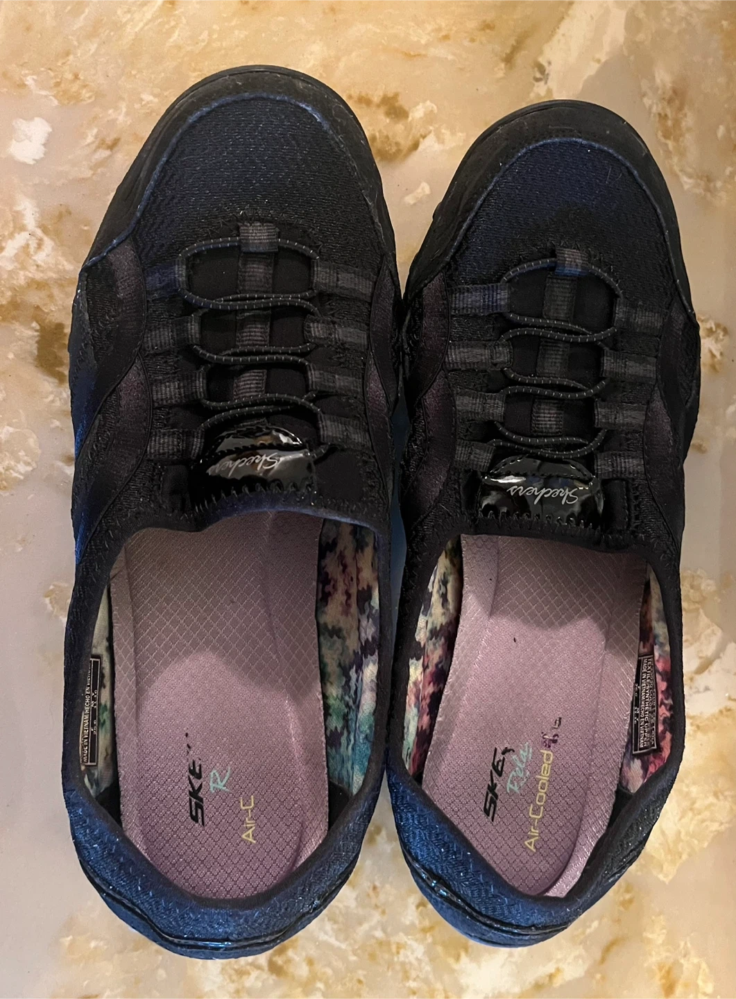 Selling a pair of Skechers Relaxed Fit shoes in black. They are a women's size 8. The shoes feature an air-cooled design for extra comfort. Perfect for everyday wear!