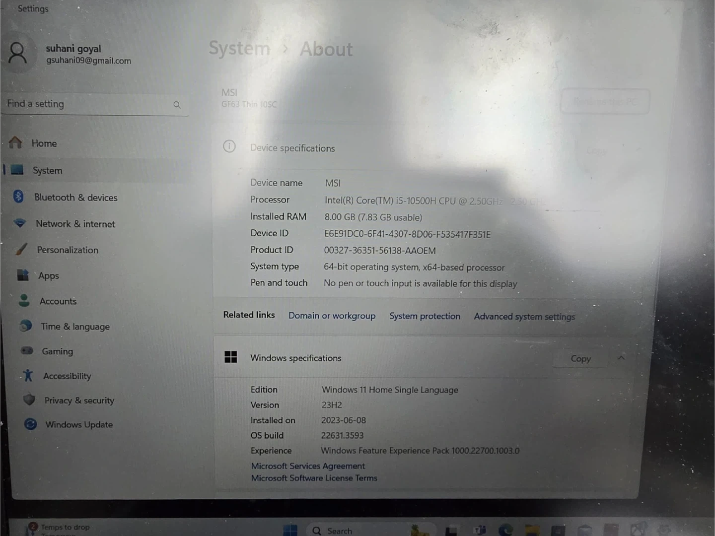 10Selling my MSI GF63 gaming laptop. It has an Intel Core i5-10500H processor, 8GB of RAM, and runs Windows 11 Home Single Language. Perfect for gaming or everyday use! It is as good as new and rarely used. Selling because I got a laptop from work.