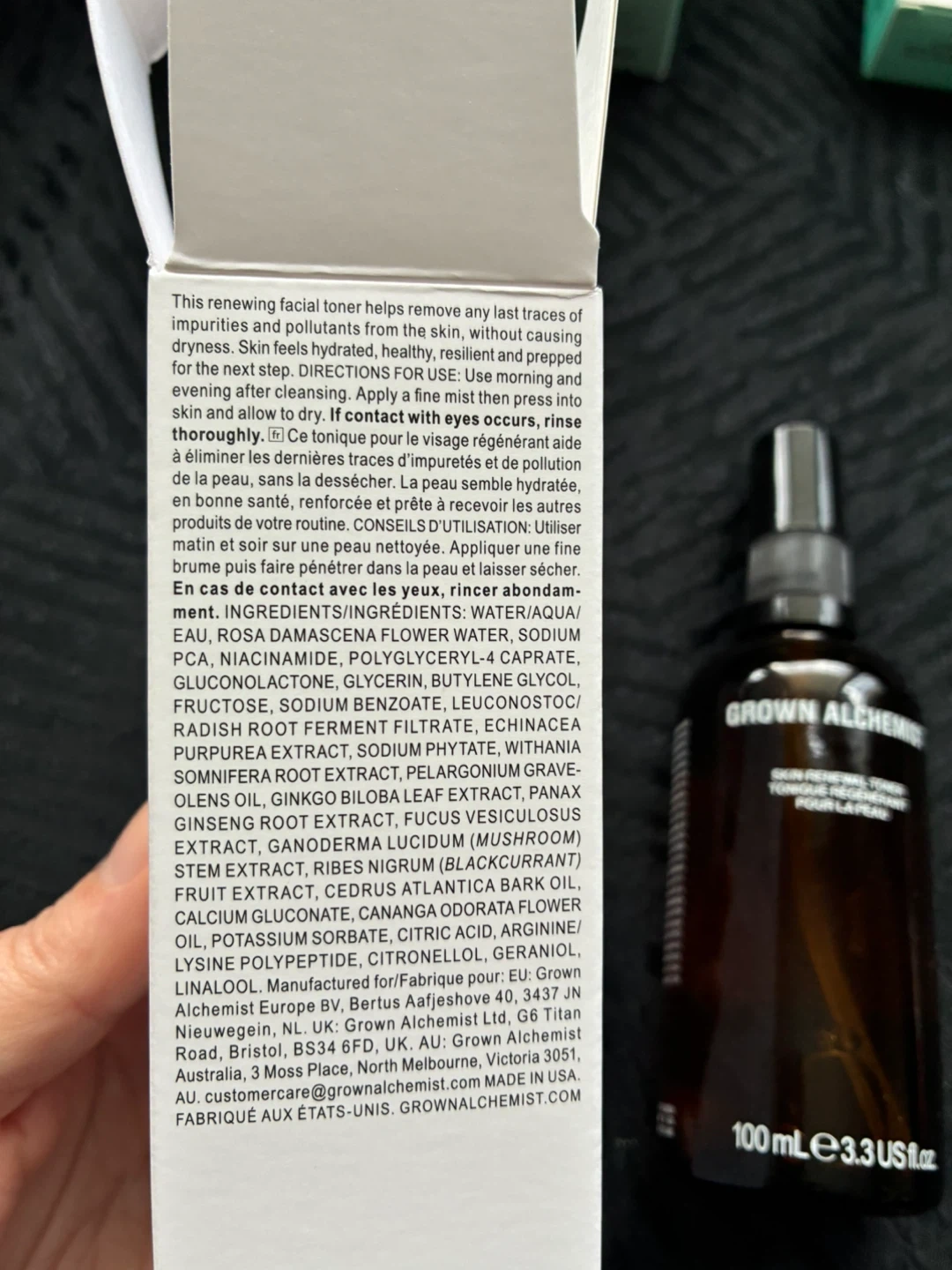 I'm selling a bottle of Grown Alchemist Skin Renewal Toner. It comes in a 100ml / 3.3 fl oz size. The toner helps remove any last traces of impurities and pollutants from the skin, leaving it feeling hydrated, healthy, resilient and prepped for the next steps