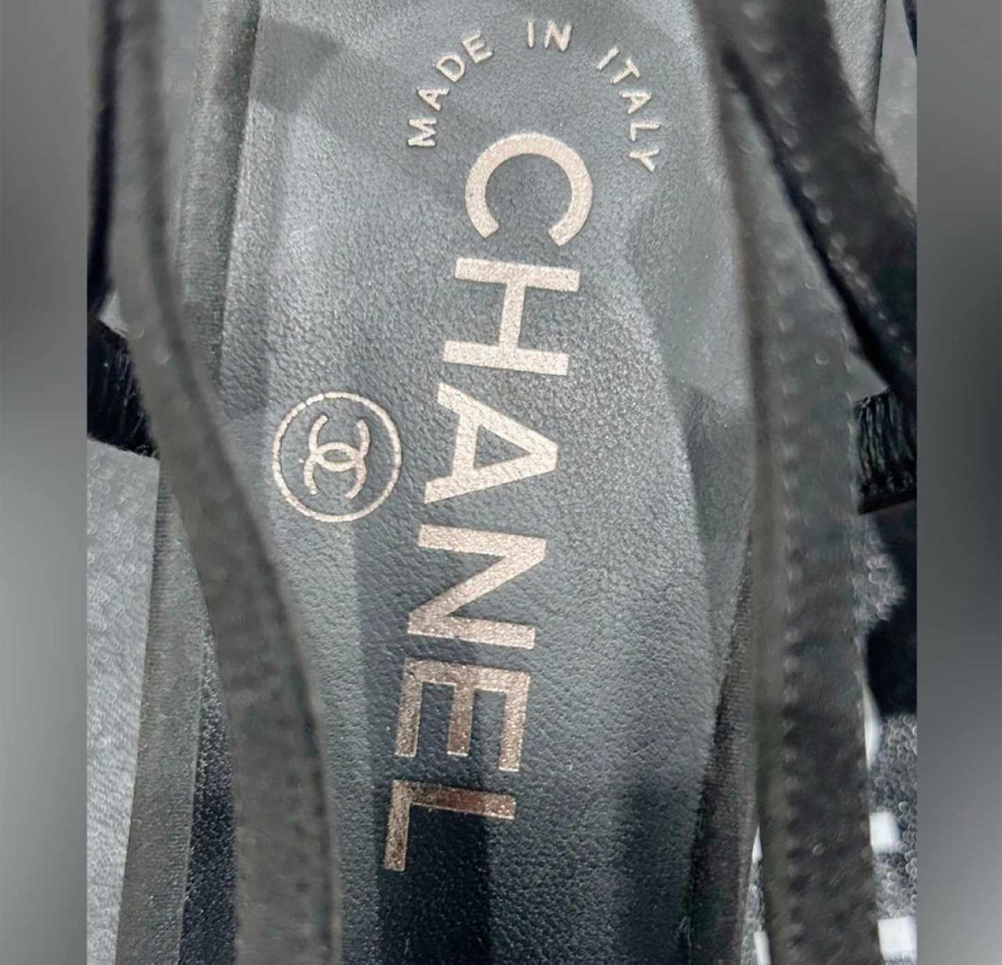 🧡black satin material, pearl-decorated strap. Stiletto heel, Chanel logo on the heel, stylish and versatile.