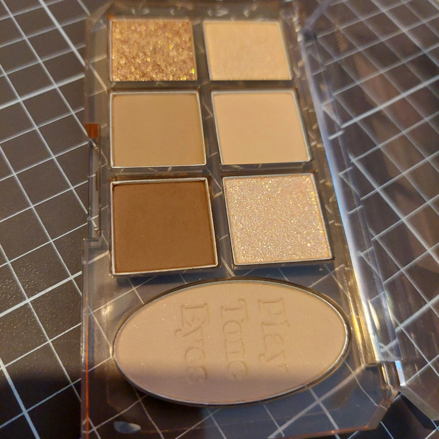6-shade eyeshadow + 1 blush/eyeshadow palette with a variety of neutral and warm toned shades (leans a bit warm, official product photos more accurate)