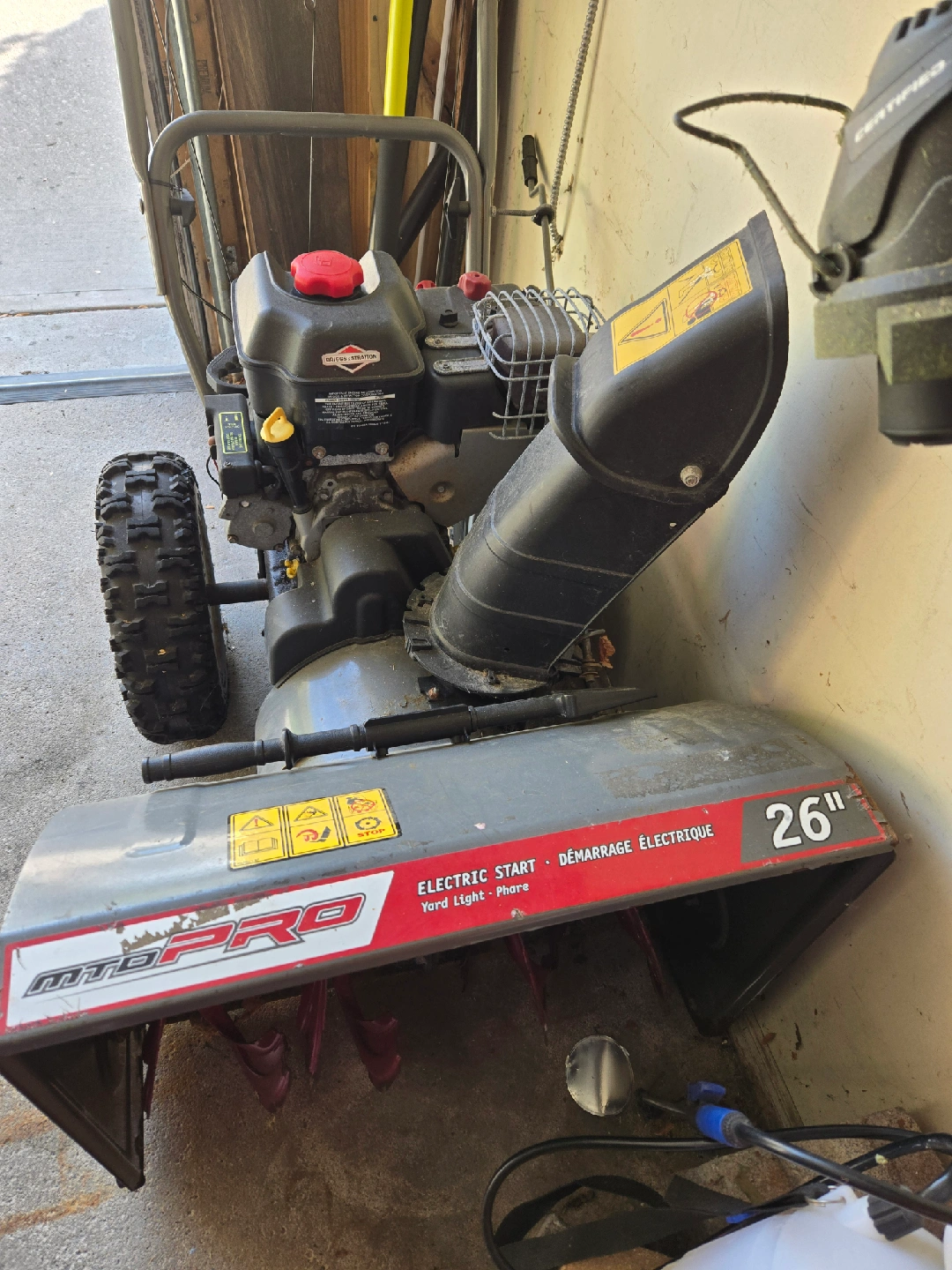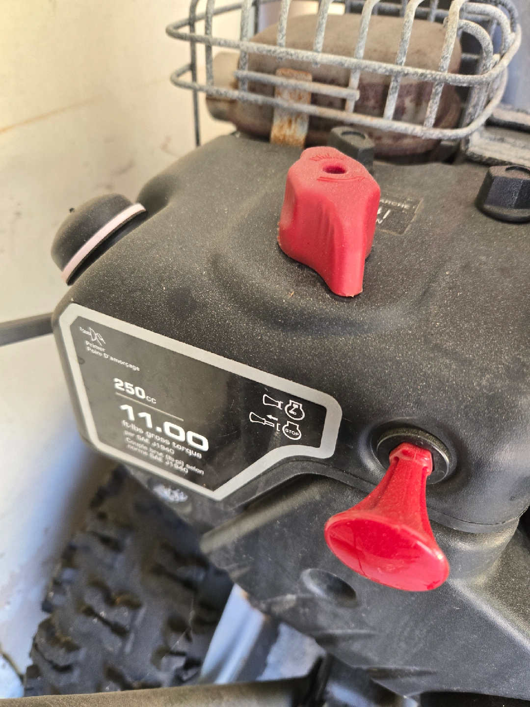 60Briggs & Stratton 1100 Snow Series engine. electric start and a 250cc engine.