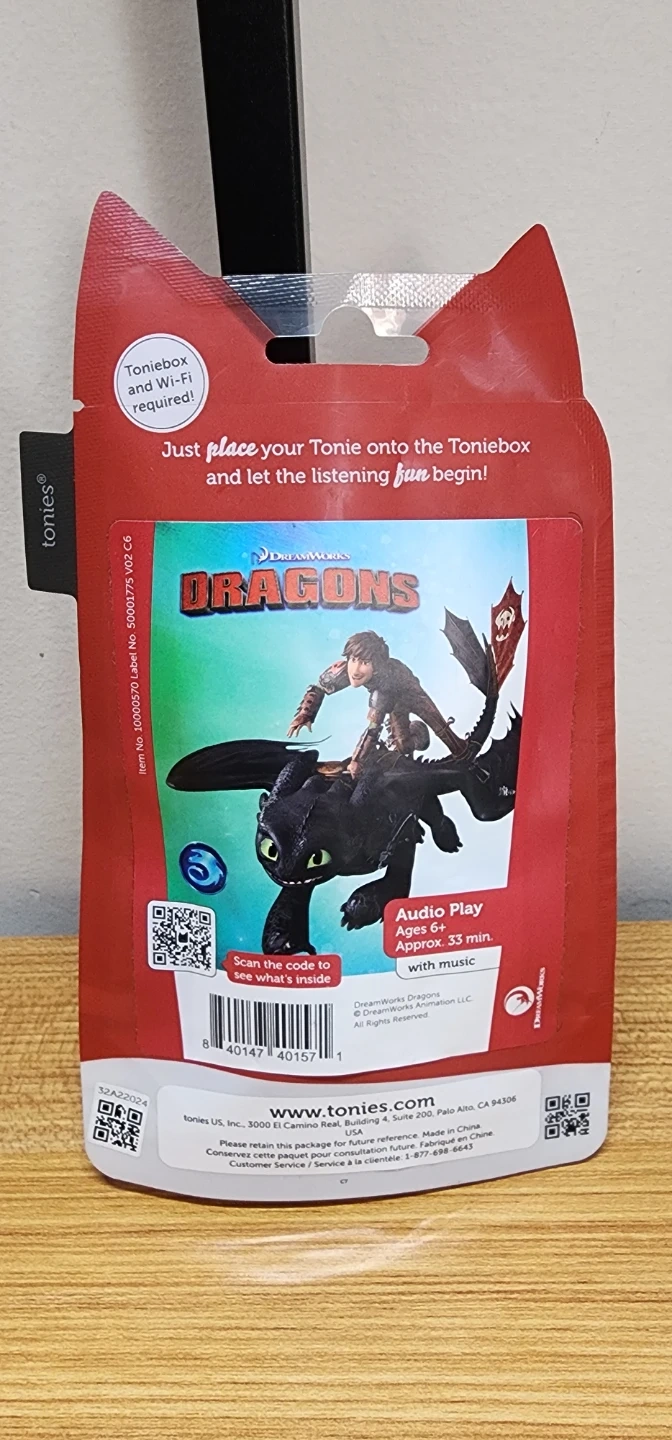 This Tonies audio character is from DreamWorks Dragons. It plays audio stories and music with the Toniebox. Audio Play is approx. 33 minutes.