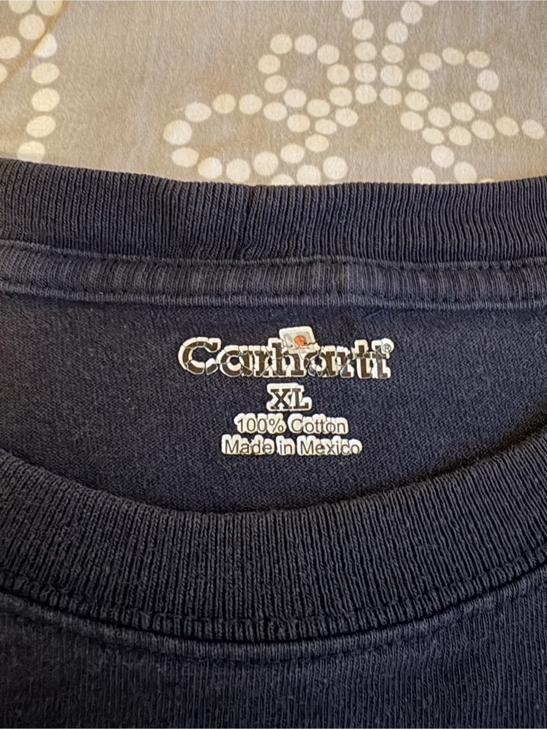 Selling a Carhartt long-sleeve shirt in size XL! It's a comfy, durable shirt made from 100% cotton and features a pocket on the chest. The shirt is a nice navy blue colour, perfect for everyday wear!