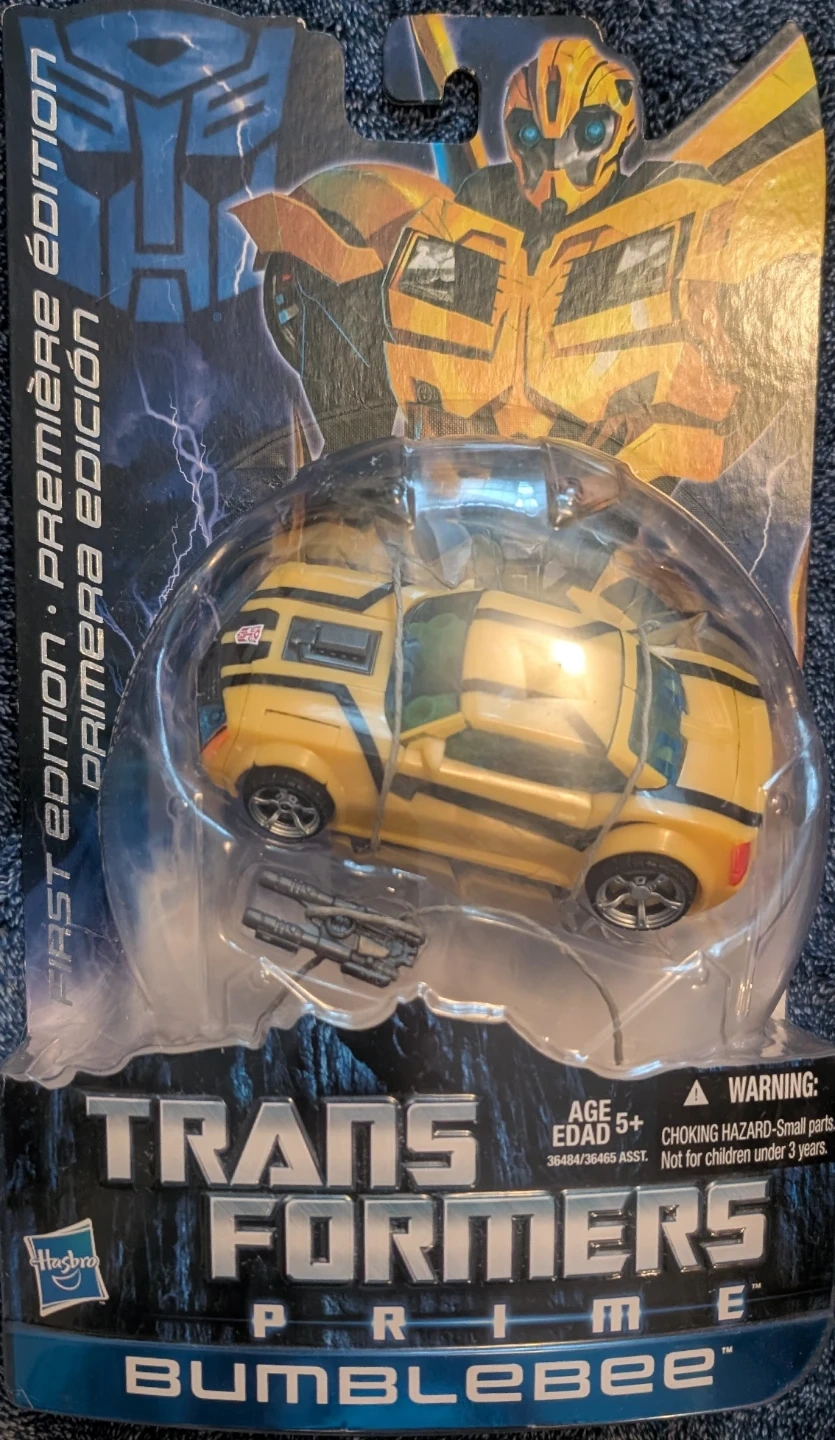 This deluxe size Transformers Prime, first edition, Bumblebee action figure transforms from a sports car to robot, and back again.