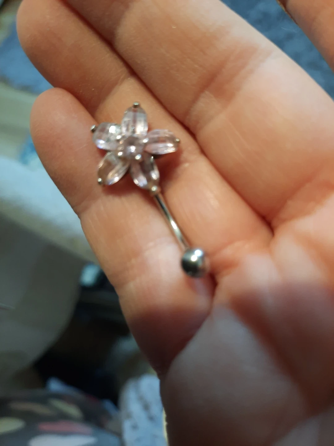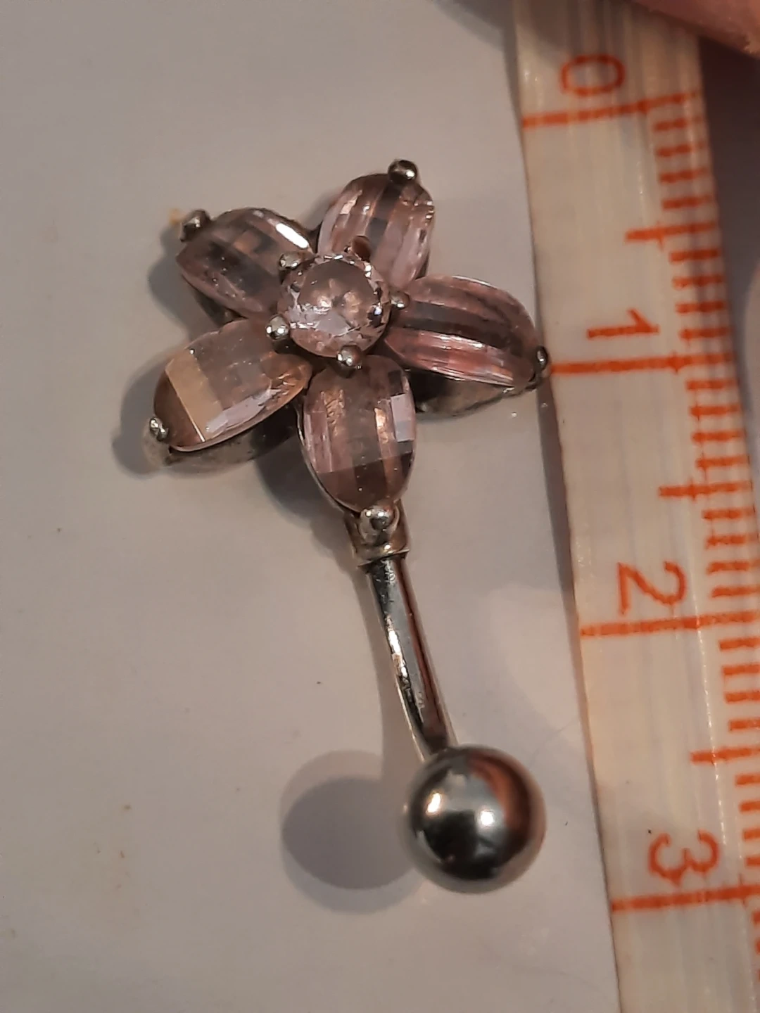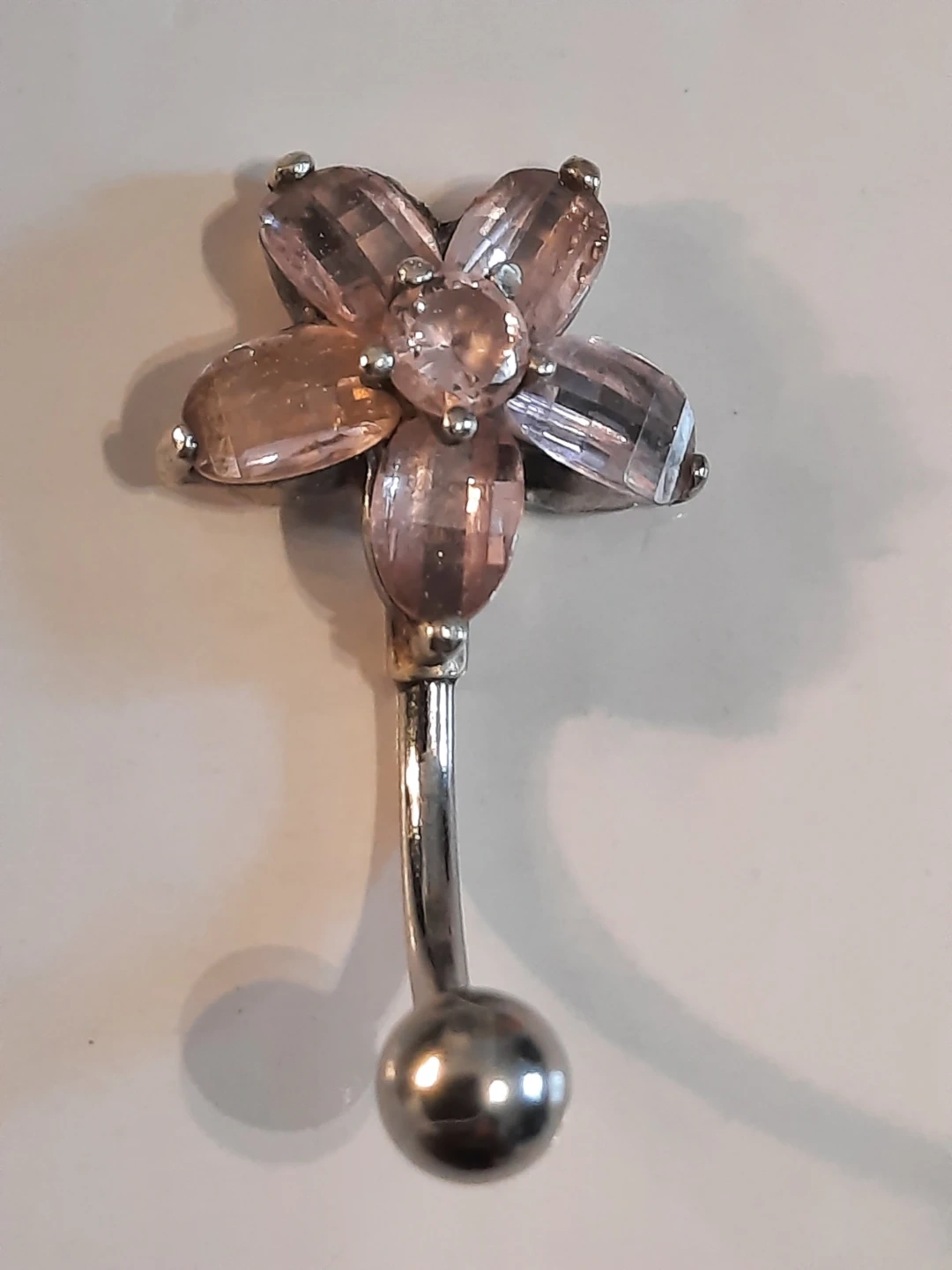 This belly button ring features a delicate flower design adorned with sparkling pink gems 925 sterling silver stamped 925.. It's made from silver-toned metal, ensuring a bright and shiny appearance. This piece adds a touch of charm to your navel piercing. Perfect for everyday wear or special occasions!