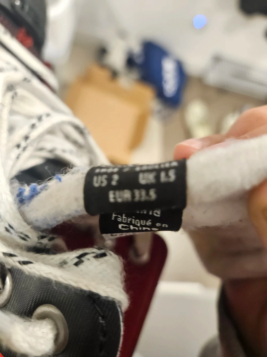 Bauer hockey skates in size 1R. These are US size 2, UK size 1.5, and EUR size 33.5. They're made in China. These skates are suitable for young hockey players just starting out or looking to upgrade.