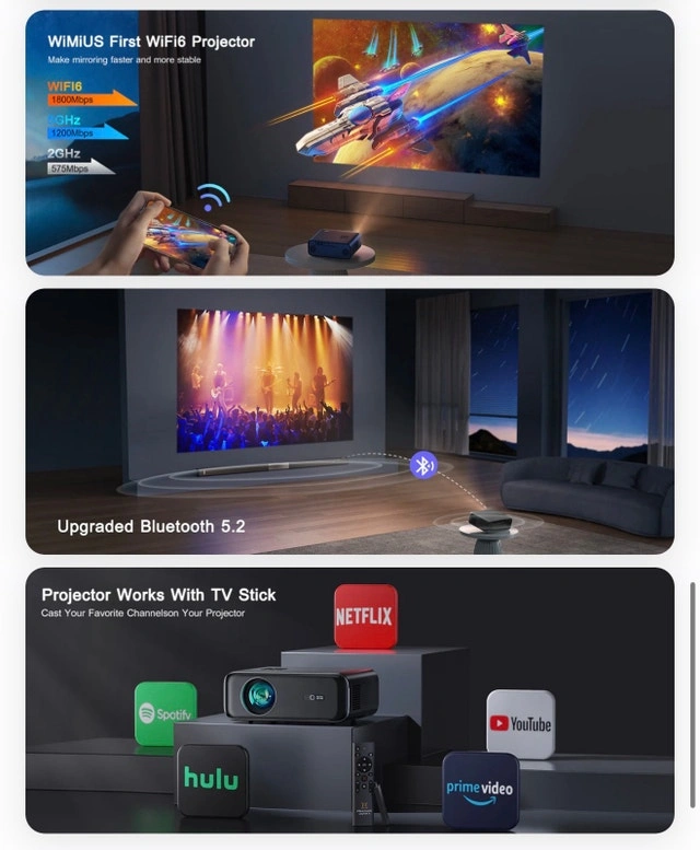 WiMiUS Outdoor Projector P62 WiFi 6 Bluetooth Full HD 1080P Portable Projector Supported 4K, 4D/4P Keystone, 50% Zoom, 300" Display. Great for home cinema, smartphones, TV sticks, PPT, and PS5. Used only once, so it's in excellent condition. Cash accepted, cashless payment also okay.