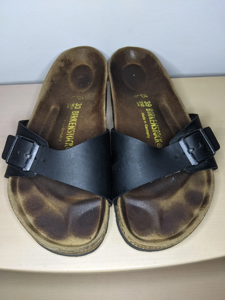 Birkenstock Madrid Birko-Flor Size EU39 US8.5 Black Strap Sandal