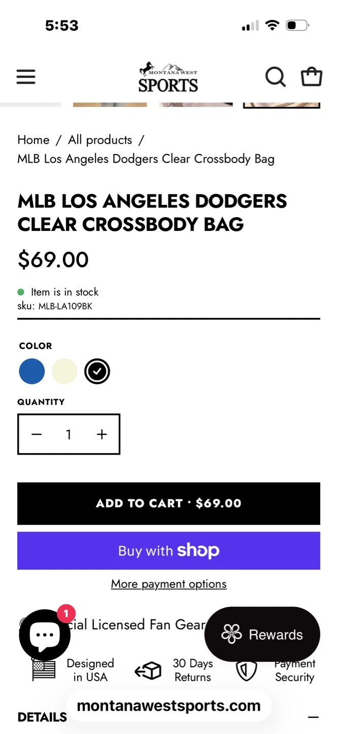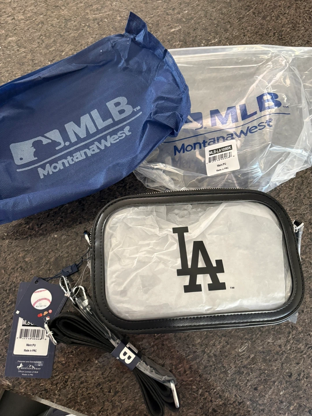Awesome clear bag for games and concerts. If you don’t like LA you can turn it around or grab a Jays sticker! MLB side is also a pocket