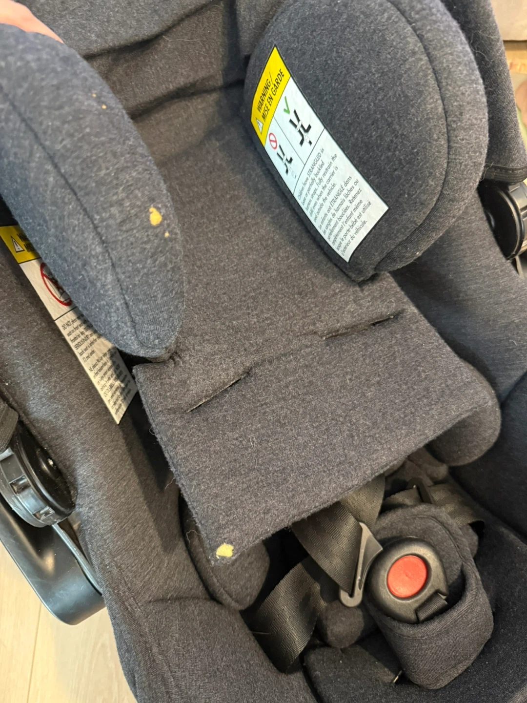 Selling a Clek Liing infant car seat. It's in great condition and ready for a new little one! There are some minor signs of wear and tear on the fabric, as shown in the photos —- does not affect functionality.