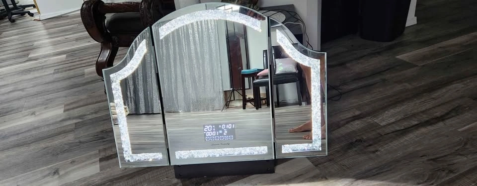 This Bluetooth LED mirror is foldable and expands from 16 inches to 32 inches when opened.