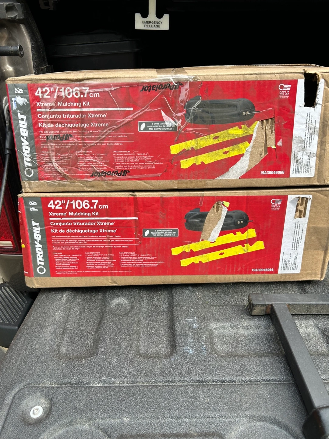 NEW - A collection of mulching kits. Some are for different deck sizes. Perfect to keep your lawn nice and tidy. $40 a set or take more for less-