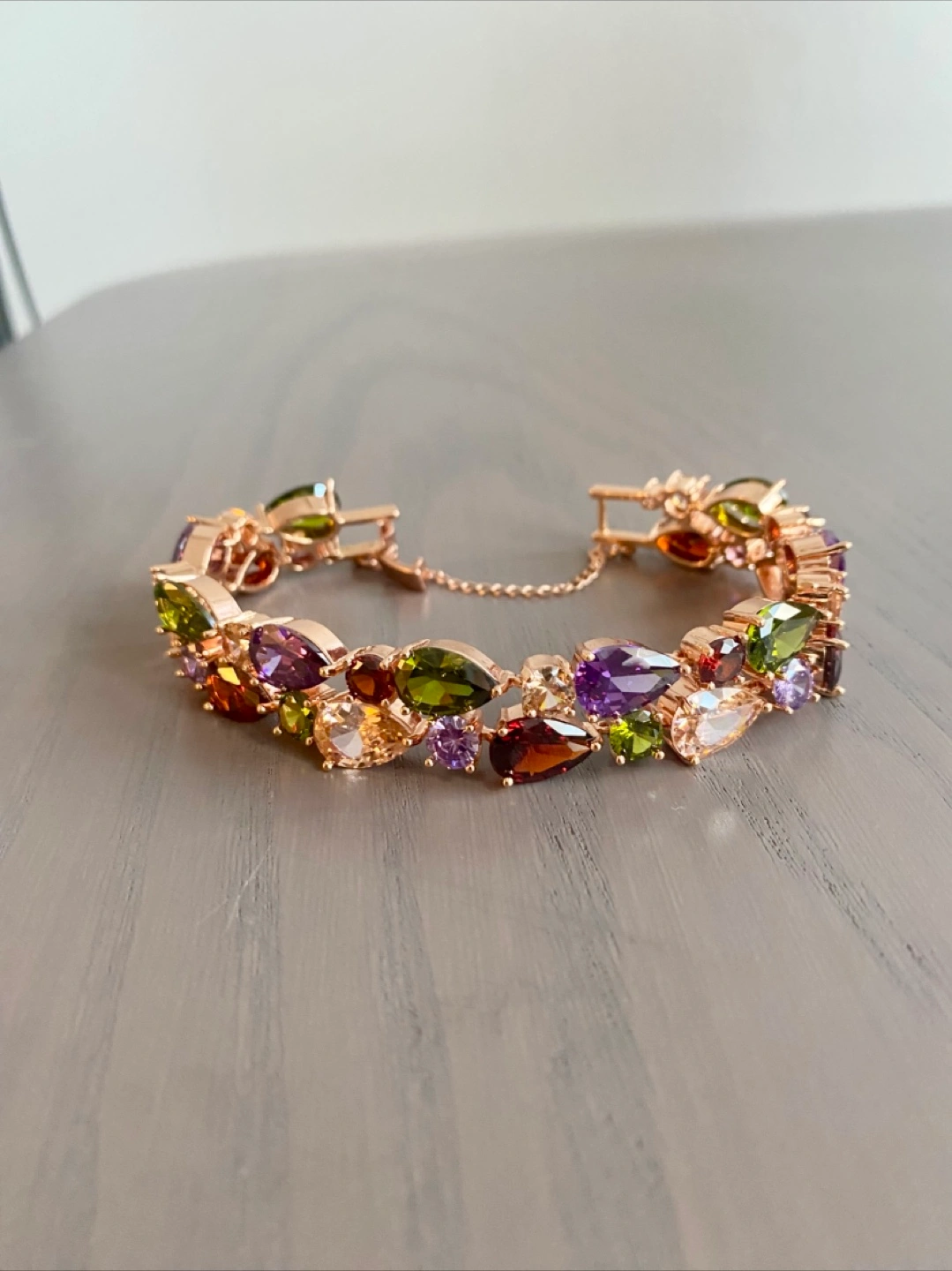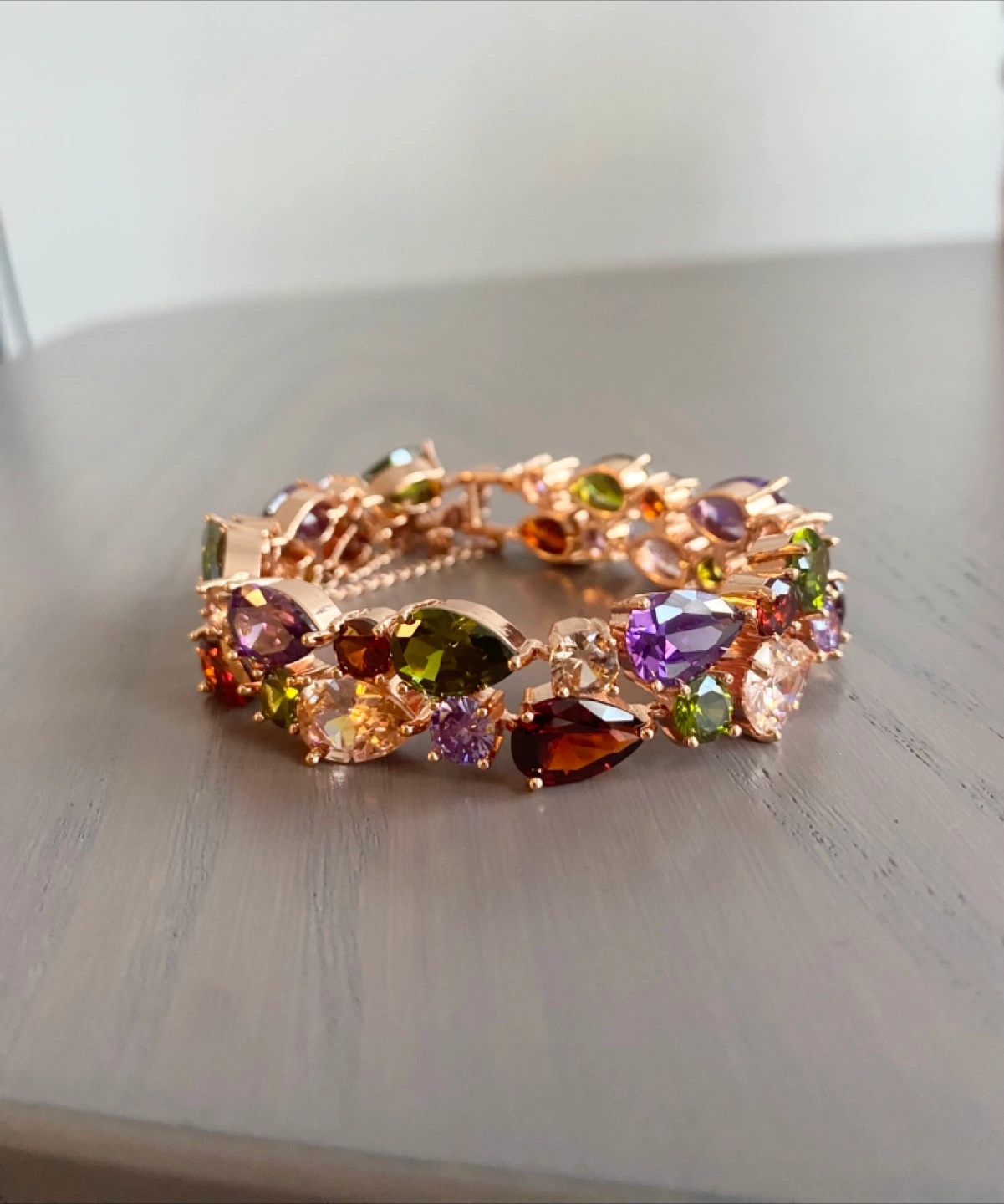 Selling a beautiful bracelet featuring multiple gemstones! The bracelet has a rose gold tone and is adorned with various colourful gems. It's new and would make a lovely addition to any jewelry collection. Around 7.5 inch long From clean, pet-free, smoke-free home Pick up only in Acadia SE Price is firm Please check my other ads