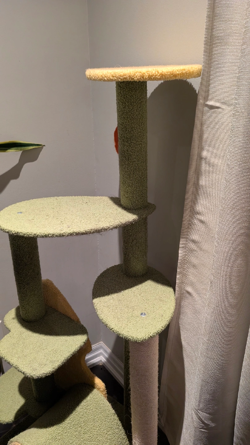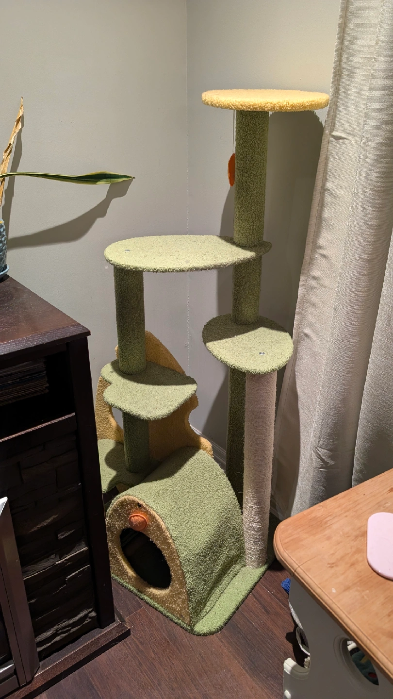 141Selling a gently used multi-level cat tree! It features several platforms for your cat to lounge on, a cozy little hideaway, and a scratching post wrapped in durable rope. It's perfect for keeping your feline friend entertained and active, all while saving your furniture from their claws. I tried to move this around to different spots to see if it makes a difference but my cat does not like it he barley scratch it.