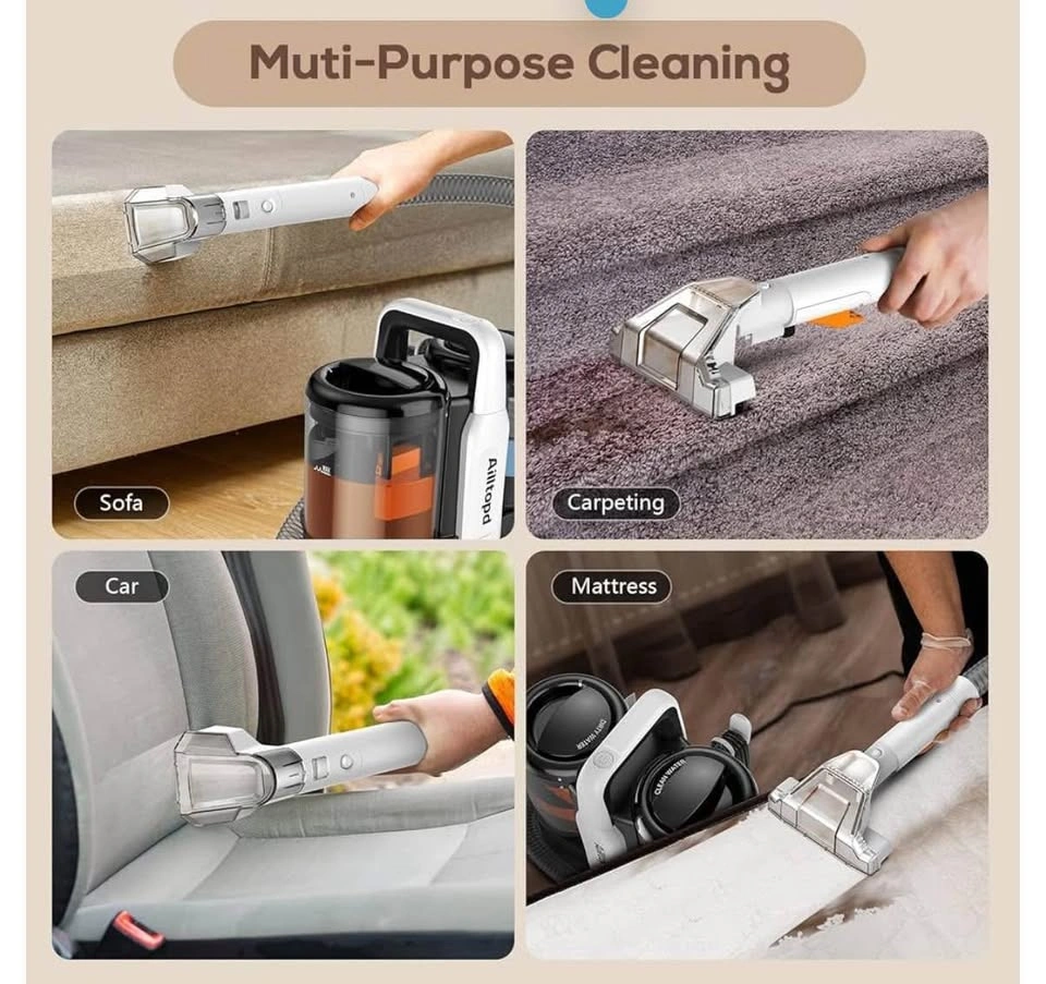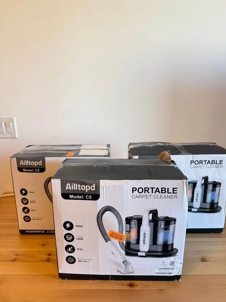 Ailltopd Portable Carpet & Upholstery Spot Cleaner. Powerful portable spot cleaner — perfect for carpets, couches, stairs, car seats, and upholstery. ✅ Deep cleaning for tough and old stains ✅ Strong suction — leaves surfaces almost dry ✅ Separate tanks for clean and dirty water ✅ Dual-size brush heads for any cleaning task ✅ Compact, lightweight, and easy to use Ideal for pet owners 🐾, car interiors 🚗, or keeping your home spotless. Brand new in box. 📦 Pickup: North York