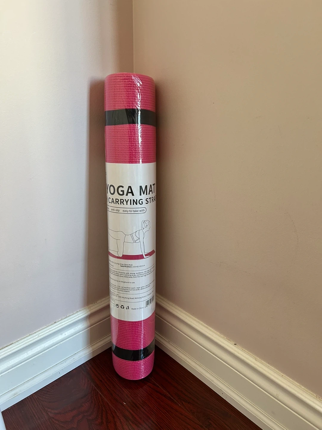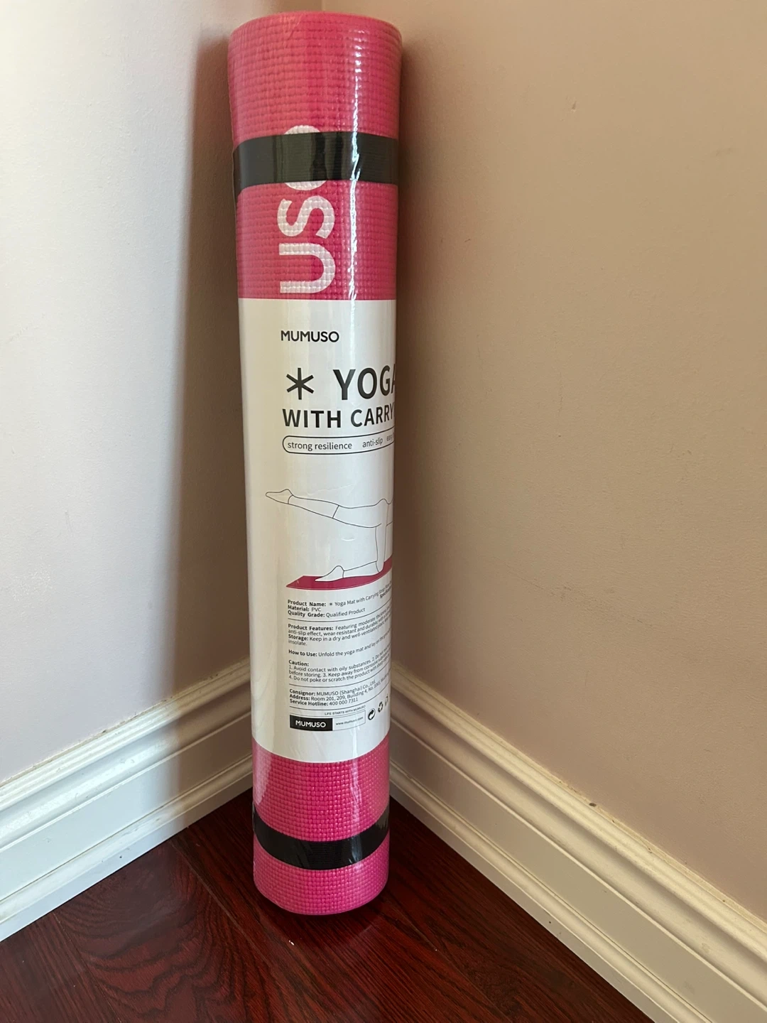 Get your yoga on with this Mumuso yoga mat! It comes with a handy carrying strap, making it easy to take to the gym or park. The mat is a lovely rose red colour and measures 173 x 61 x 0.4 cm. It's designed for strong resilience and is anti-slip, so you can focus on your poses