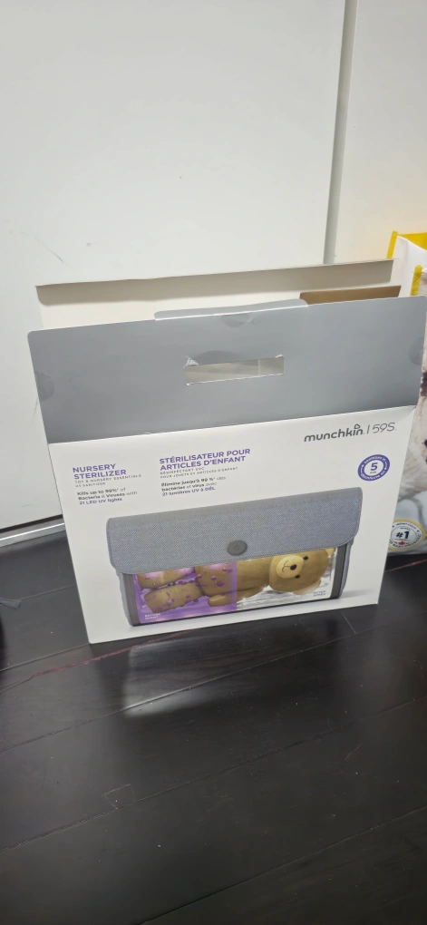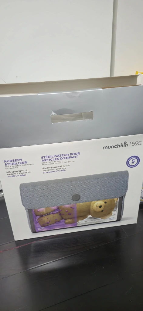 Selling a brand new Munchkin 59S Nursery Sterilizer! It's still in its original packaging. This sterilizer uses 21 LED UV lights to kill up to 99% of bacteria and viruses on baby essentials. Perfect for keeping your little one's items clean and safe!