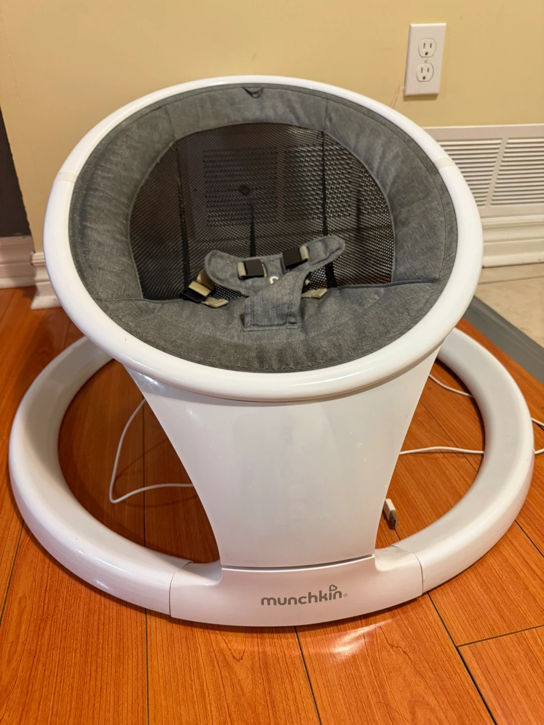 10Selling a Munchkin baby swing! It's in great condition and ready for a new home. This swing features a grey seat and a white base. Perfect for keeping your little one comfortable and entertained. The cushion is also with the swing in a great condition.