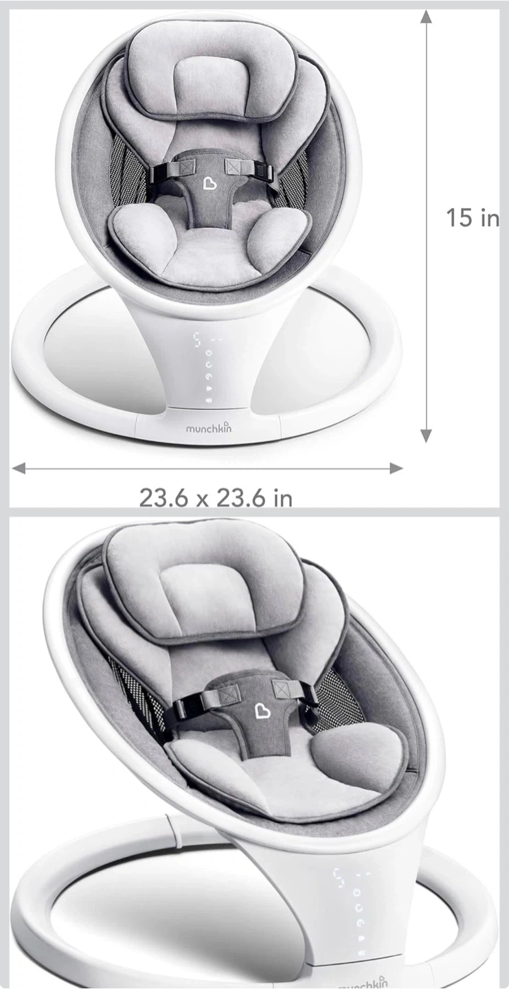100Selling a Munchkin baby swing in excellent condition! It's a lifesaver for soothing little ones. - Dimensions: 23.6 x 23.6 x 15 inches - Comes with a remote control for easy operation
