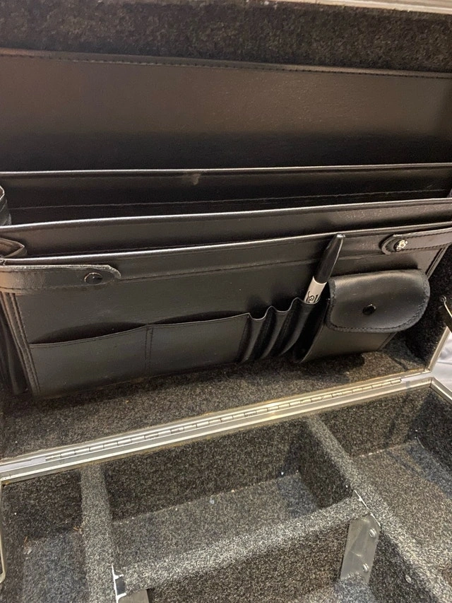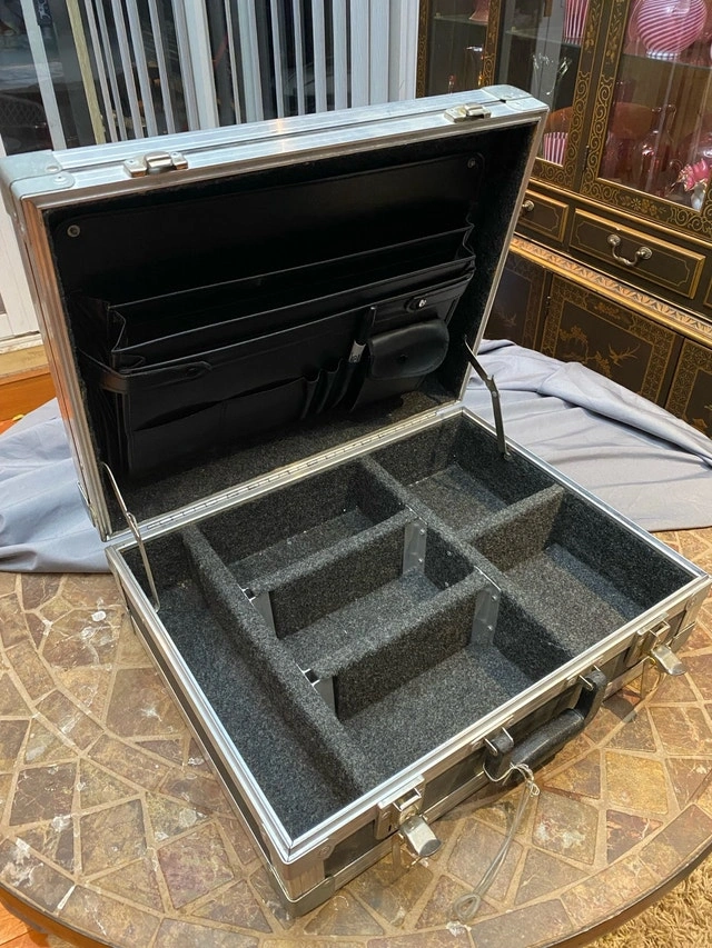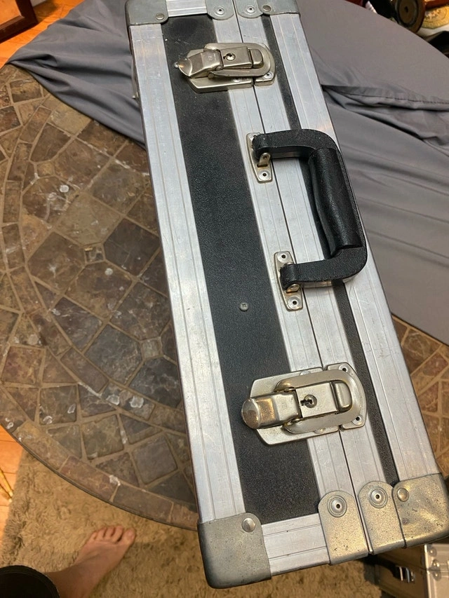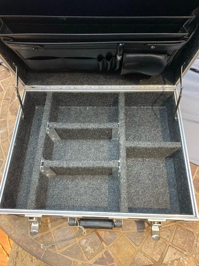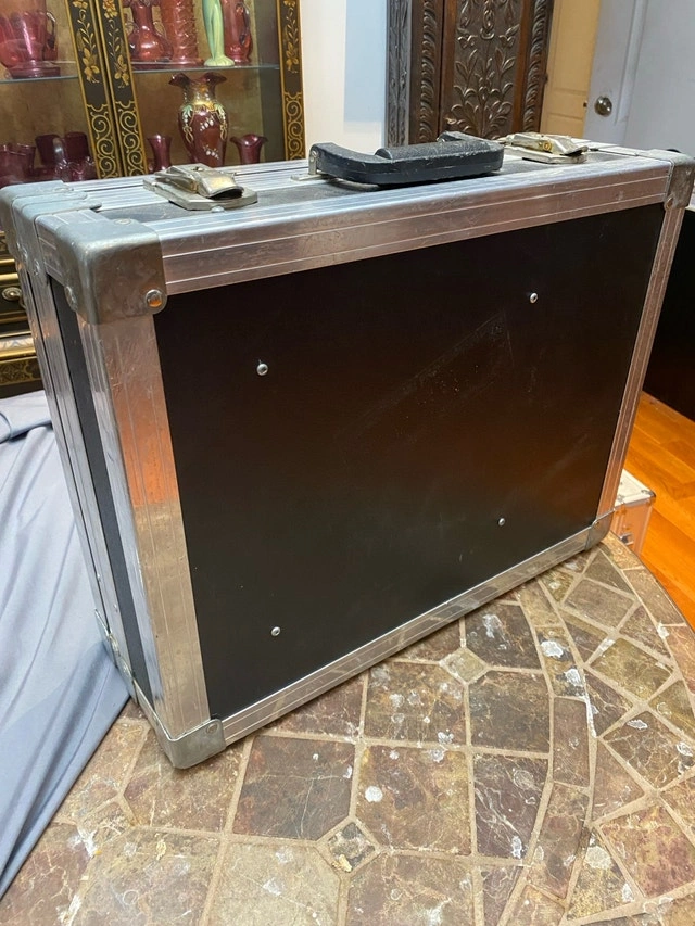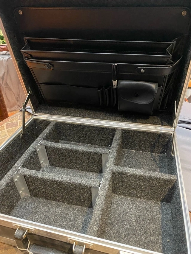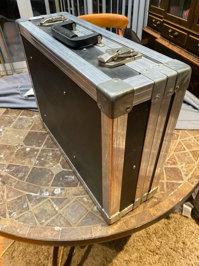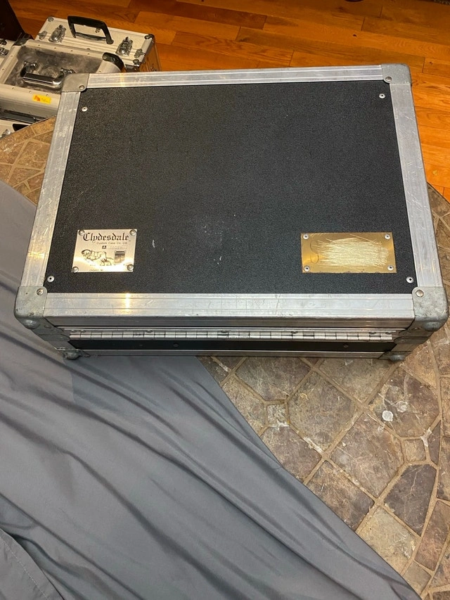 Clydesdale c. 1996 18” x 13.5” x 6”. They don’t make’em like they used to!! The only road case you will ever need! Founded in 1975, Clydesdale Custom cases was one of the original custom case ATA case manufacturers in Canada. Clydesdale offered the highest quality custom case design that was available in North America Has compartments for small gear, cables and lid folder style for paperwork, phone, cards. Used condition but in great shape, especially inside case excellent, clean, no wear. Outside casing shows some minor wear, scuffs…superficial scratches but no dents or damage. A new personalize plate can be placed over existing “scratched out” brass one. For Sale By: Owner