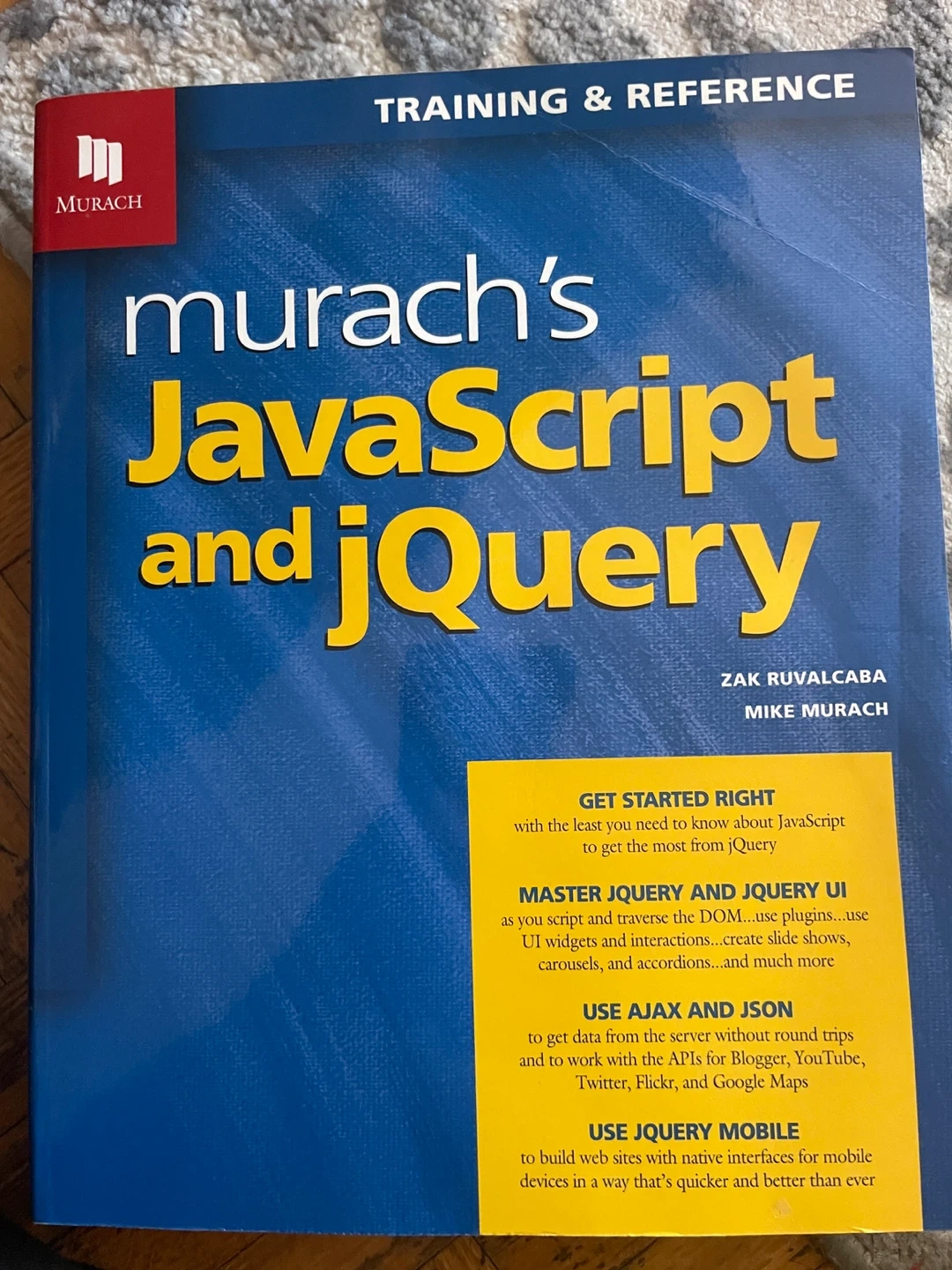 Selling a copy of Murach's JavaScript and jQuery book by Zak Ruvalcaba and Mike Murach! This book is great for learning how to use JavaScript and jQuery for web development. It covers topics like AJAX, JSON, and jQuery Mobile