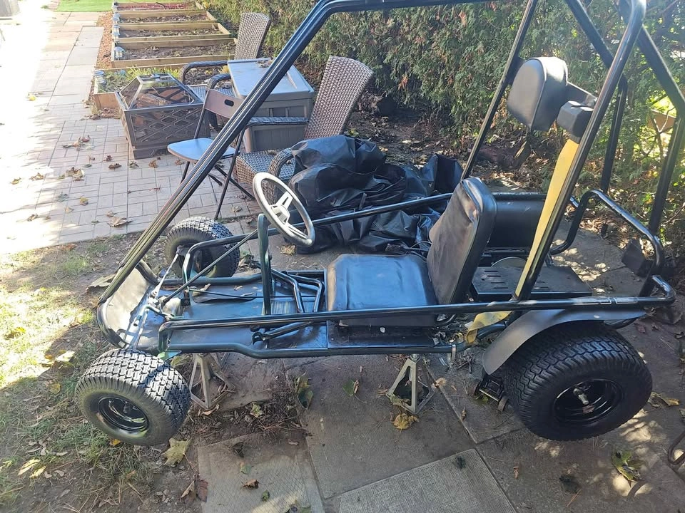 10Selling my go kart. This was going to be my winter project, but selling because I need the money to help with some hurricane emergency relief for some pool in Jamaica. It has new tires, brand new axle, sprocket and brake discs. All it needs now is an engine and brake to be set up. The price is firm.