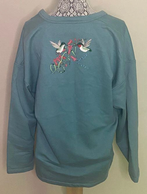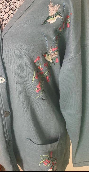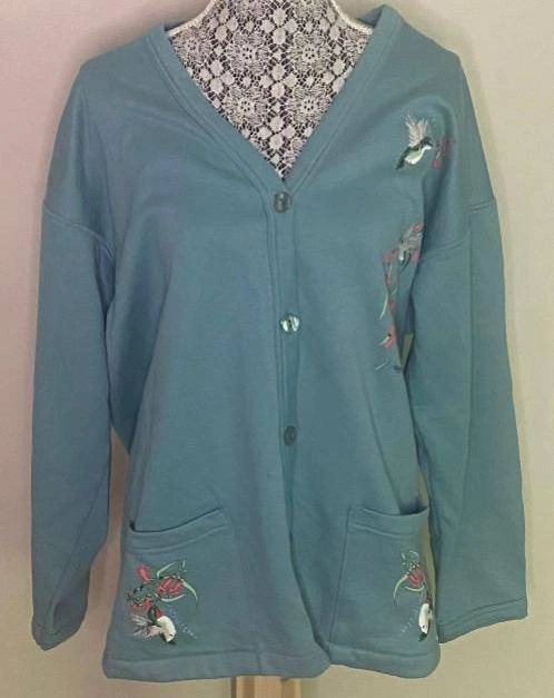 15Add this gorgeous Muskoka Canada North Sportswear Women’s Hummingbird Cardigan to your wardrobe for those casual times when you want to sit back and relax or run some errands in style. The hummingbird motif adorns all facets of this cardigan and shows vibrant colors that resonate with vintage casual wear. Consisting of a cotton/polyester blend, this beautiful Muskoka Canada North Sportswear cardigan will be equally comfortable and durable and will compliment your wardrobe with that perfect piece of mid century modern clothing. Although pre-loved, this is in excellent condition with nominal pilling and no rips, stains or smell. For sizing specifics, please see the attached measurement guide included with the pictures in our listing. Local pickup is in Etobicoke near Islington and The Westway. We offer shipping and local delivery for this item. Please send a message about availability and cost associated with these respective services.