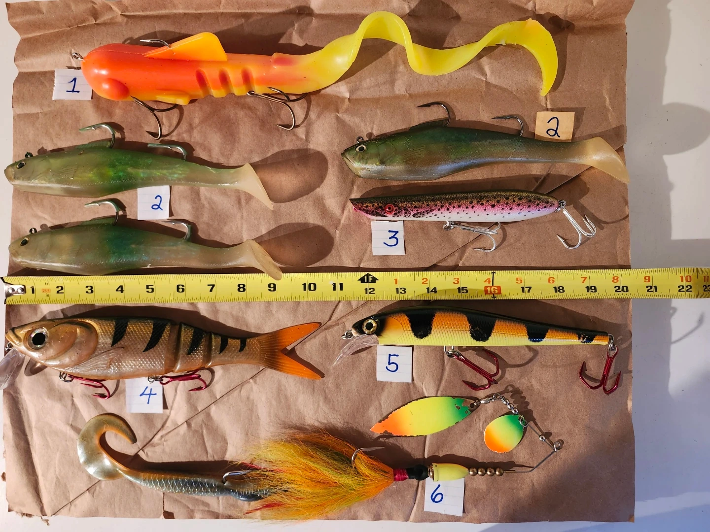 54Assorted Jigs, any size or wieght (vary from 1oz to 3oz), $2 each, your choice Assorted muskie and pike lures Lure #1...$20 Lure #2...$15 each (3 in total) Lure #3...$15 Lure #4...$20 Lure #5...$20 Lure #6...$15