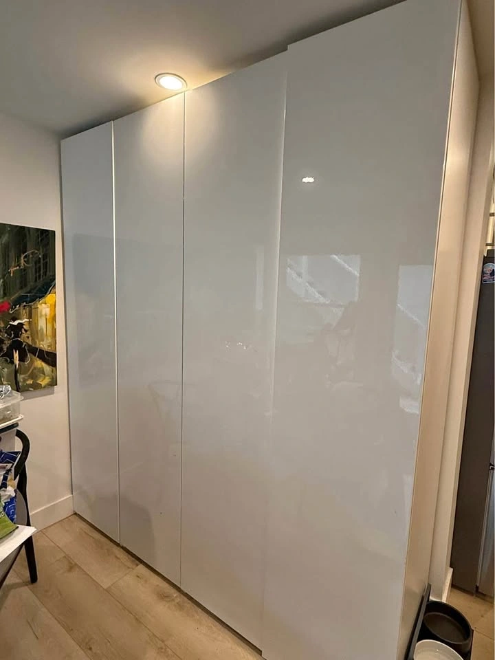 103 IKEA Pax Units. MUST GO BY NOV 30! 1. Pax 100x58x236 cm (39 3/8 x 22 7/8 x 92 7/8”) Comes with 3 KOMPLEMENT shelves 100x58 cm (39 3/8 x 22 7/8”) and 2 KOMPLEMENT Mesh Basket 100x58 cm (39 3/8 x 22 7/8”). One shelf is installed and the other two are not. $250 2. Pax 50x58x236 cm (19 5/8 x 22 7/8 x 92 7/8”) Comes with 1 KOMPLEMENT shelf 50x58 cm (19 5/8 x 22 7/8”) and 1 KOMPLEMENT clothes rail 50 cm (19 5/8”). $175 3. Pax 50x58x236 cm (19 5/8 x 22 7/8 x 92 7/8”) Comes with 3 KOMPLEMENT shelves 50x58 cm (19 5/8 x 22 7/8”) and 1 KOMPLEMENT clothes rail 50 cm (19 5/8”). $175 Doors: There are four FARDAL doors in high gloss white. 50x229 cm attached with KOMPLEMENT Soft Close Hinges. All 3 units are all white. The units are in great condition. The backings are less than perfect but still good. The units are not wall mounted and are just standing against a wall. I would like to sell all three units as a set but willing to sell individual units if needed. ALL THREE MUST GO. Pick up is in West Vancouver and I would prefer not to disassemble the units. Please ensure you have a vehicle large enough to transport and the ability to move them. Selling because I’m moving and they won’t fit in my new place. :( Open to negotiations.