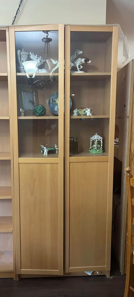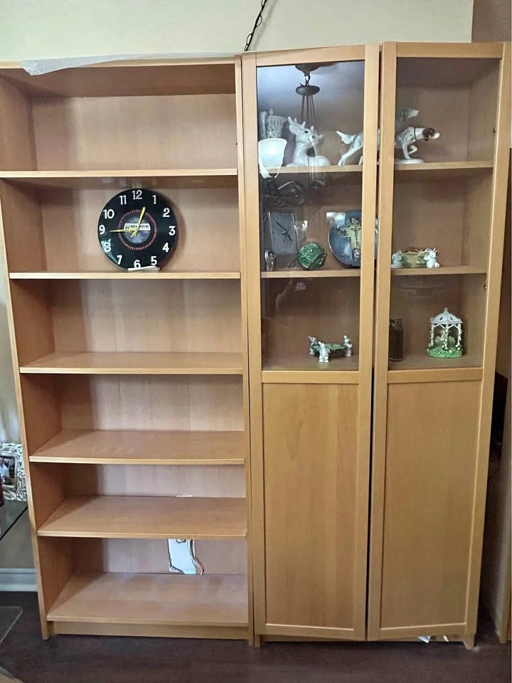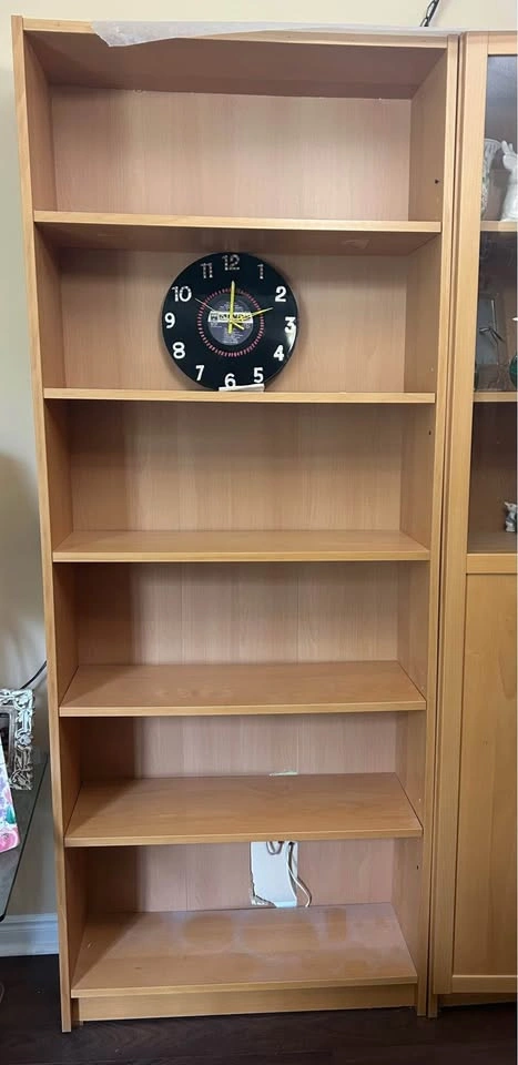 Message for a great deal! Can be bought separate or together $75 each. Approx. 6 ft tall and 2.5 ft wide. Pick up only. Must have your own transport. Second floor of condo (Yonge and Steeles) Bookcase back has a hole cut out at the bottom to fit cables/plugs through. Elevator needs to be booked in advance to move this item.