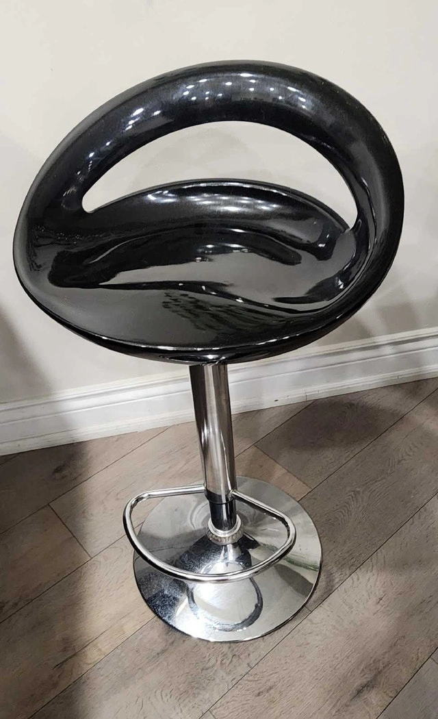 Add a touch of modern elegance to your kitchen or bar area with this stylish bar stool! This used stool features a sleek black seat and a shiny chrome base. The unique design will definitely catch the eye! If the ad is still up, the stool is still available. This stool is ready to find its forever home.