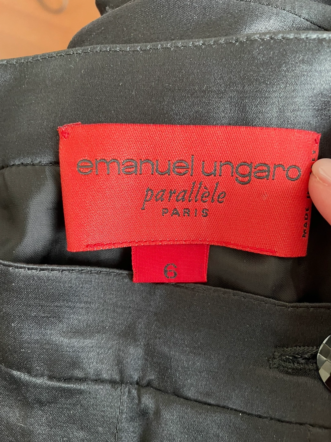 Black silk pants. In great condition, no snags. Has an inner lining and are super comfy. Unsure of this brand but it’s European and size says 6 but fits more like a 0 on the waist.